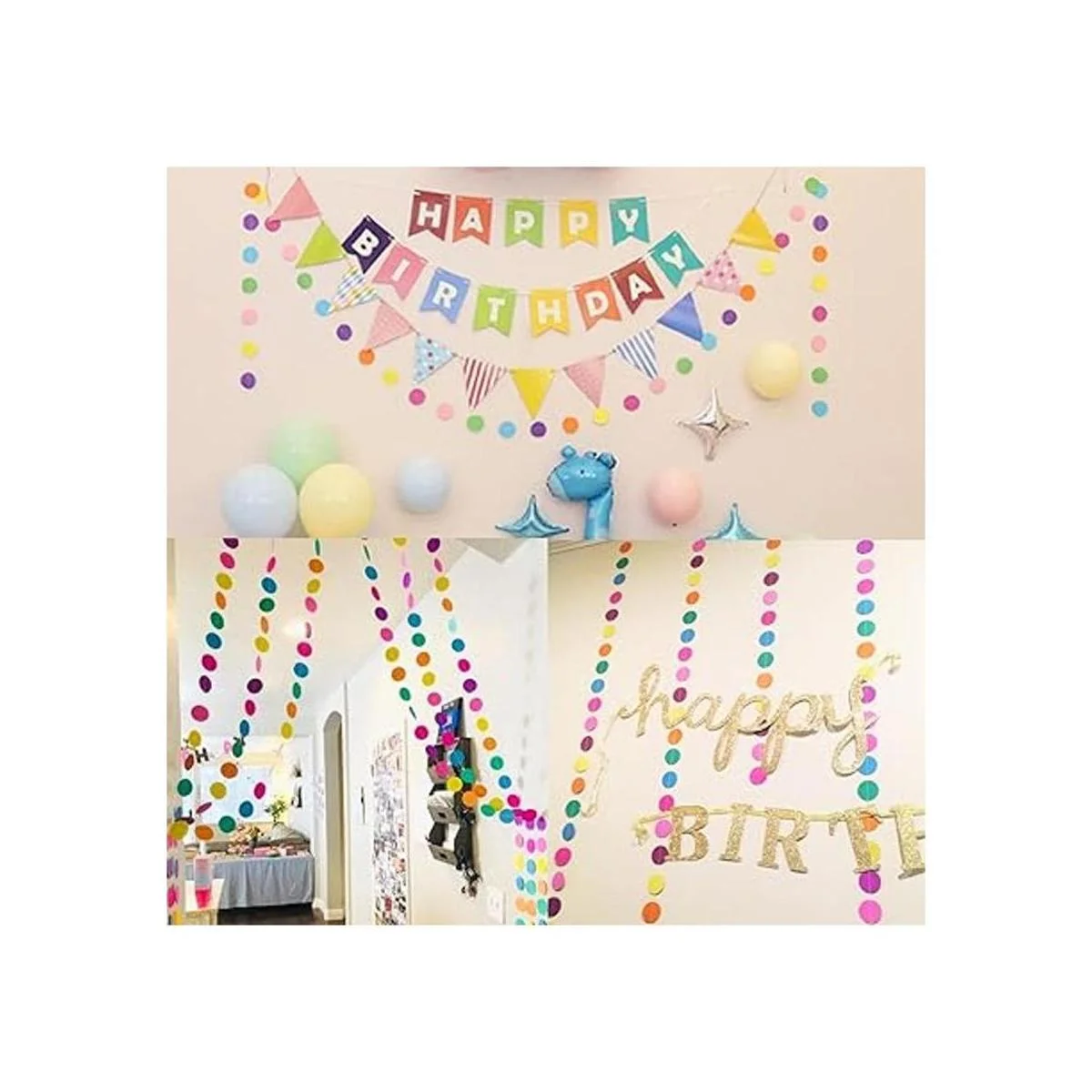 Lleno de diversión: la guirnalda de papel de puntos circulares añade un ambiente deslumbrante a tu fiesta. Se pueden colgar para decorar paredes, árboles, techos, mesas, telón de fondo, marquesinas, puertas o cualquier espacio de fiesta.