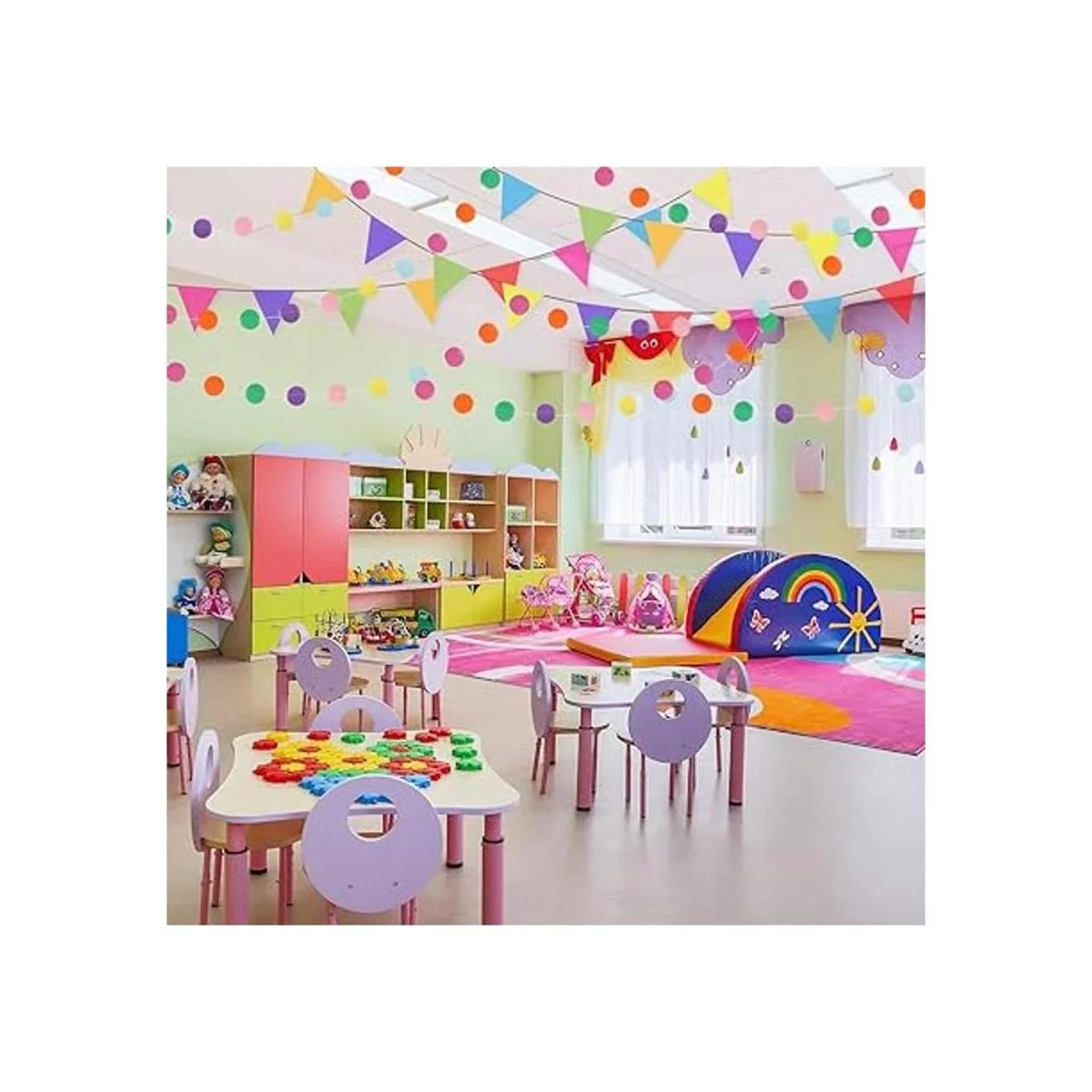 Ampliamente utilizado: las guirnaldas multicolor son perfectas para decoración de aula de arco iris, fiesta de cumpleaños, bodas, barbacoas u otras decoraciones de fiesta temática.
