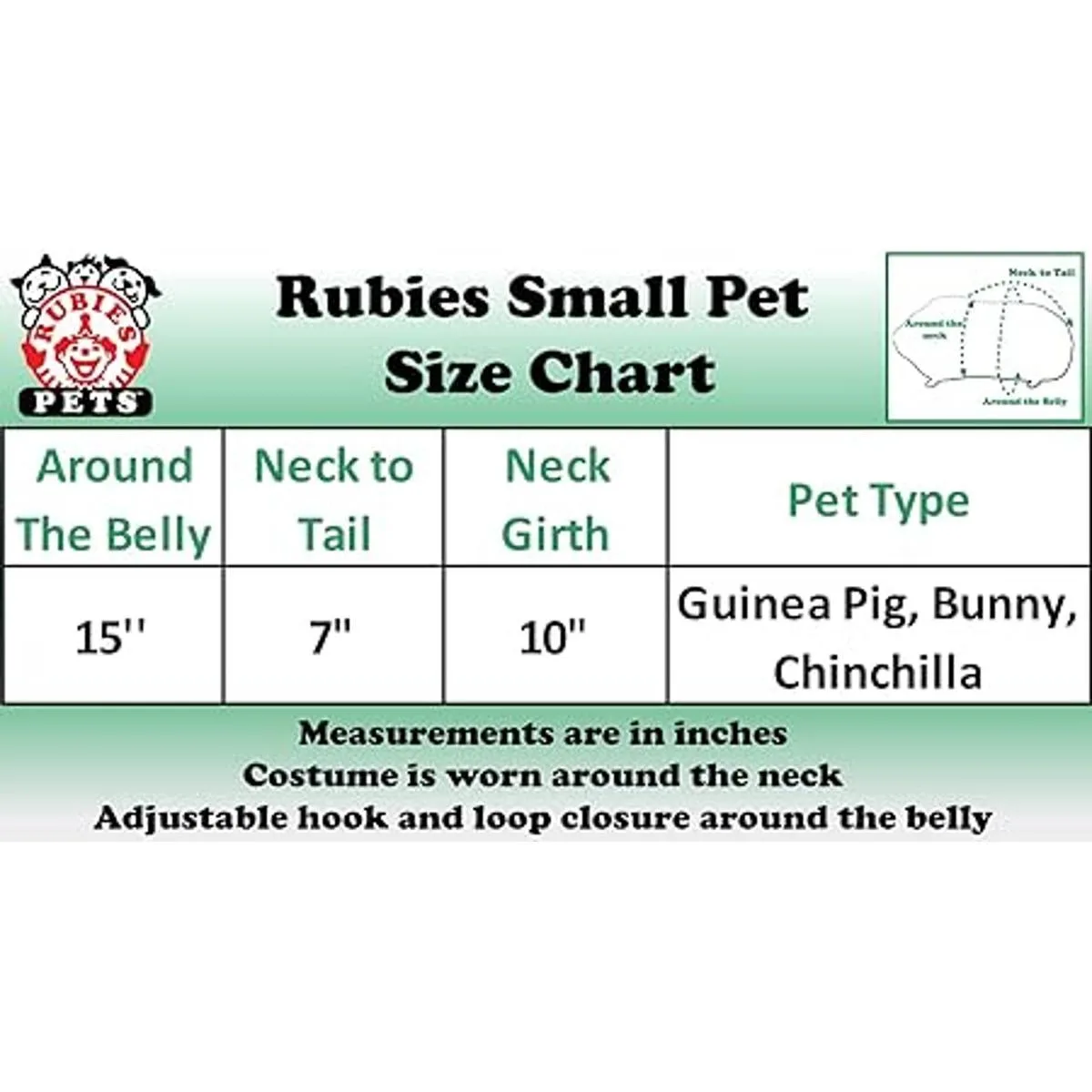Este es un disfraz para mascotas pequeñas de Rubies diseñado para mascotas pequeñas con piernas cortas como cobayas, chinchilla o conejos; disfraz diseñado para ir alrededor del cuello con correas alrededor del vientre que tienen cierres de velcro