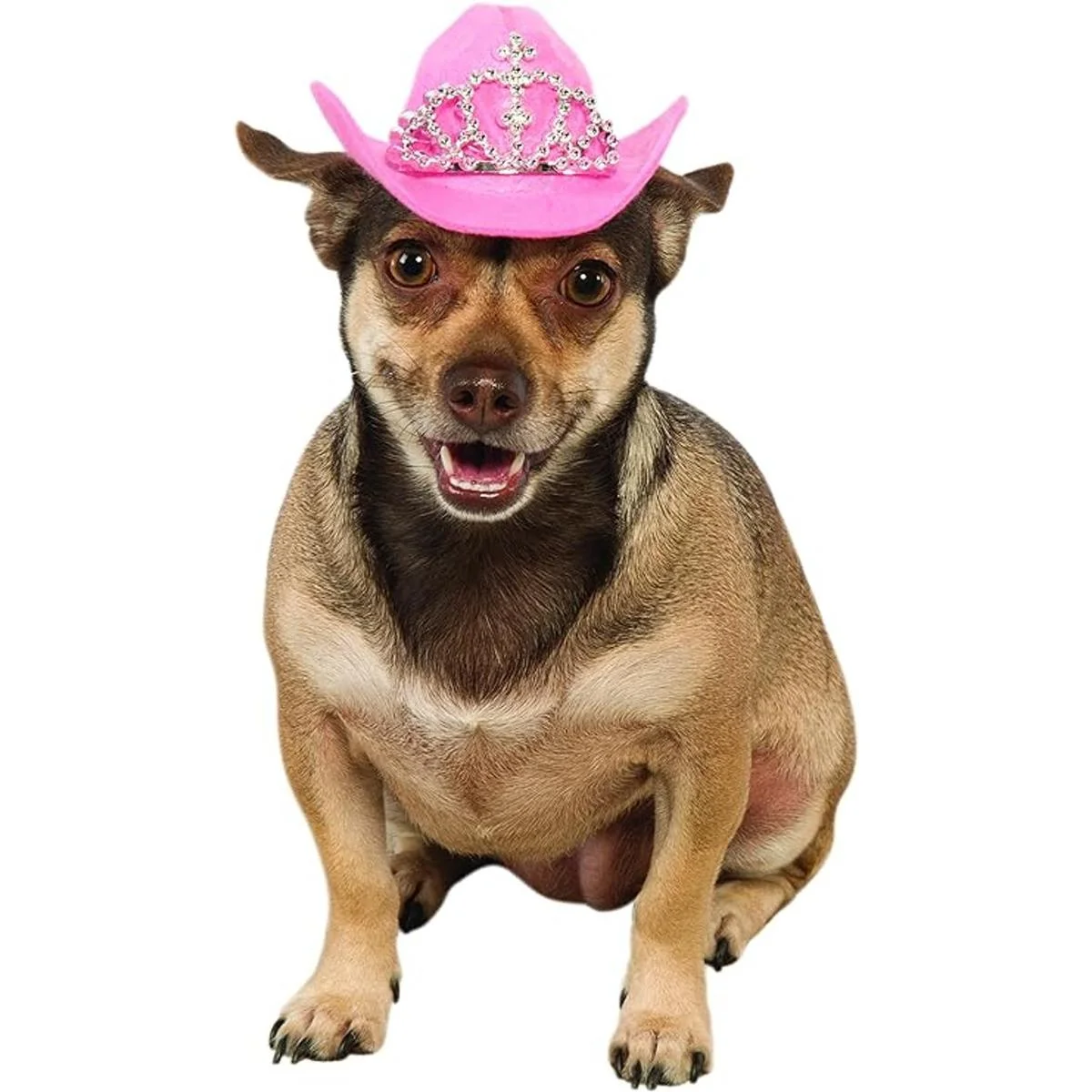 Sombrero de vaquera rosa con tiara adjunta con diamantes de imitación brillantes