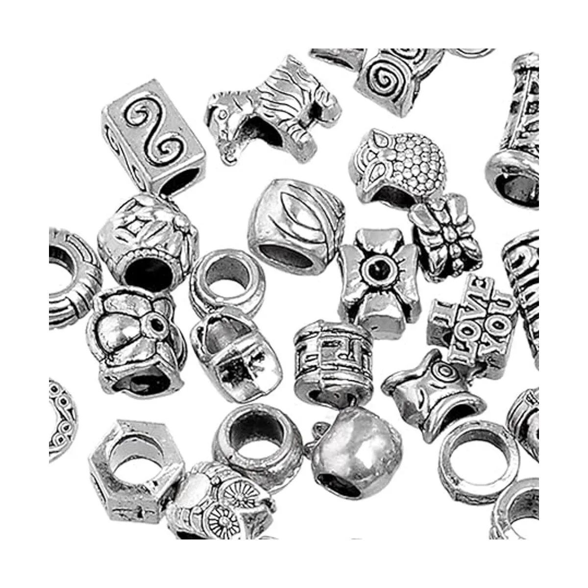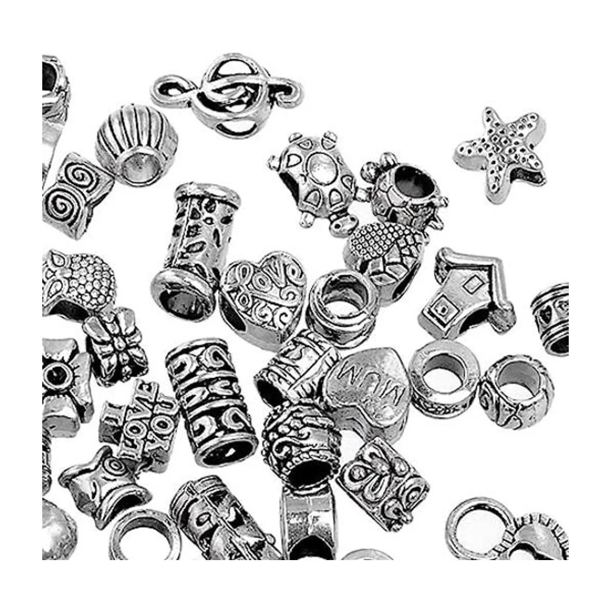 El paquete incluye: 50 abalorios de metal tibetano europeo, diseños y tamaños variados
