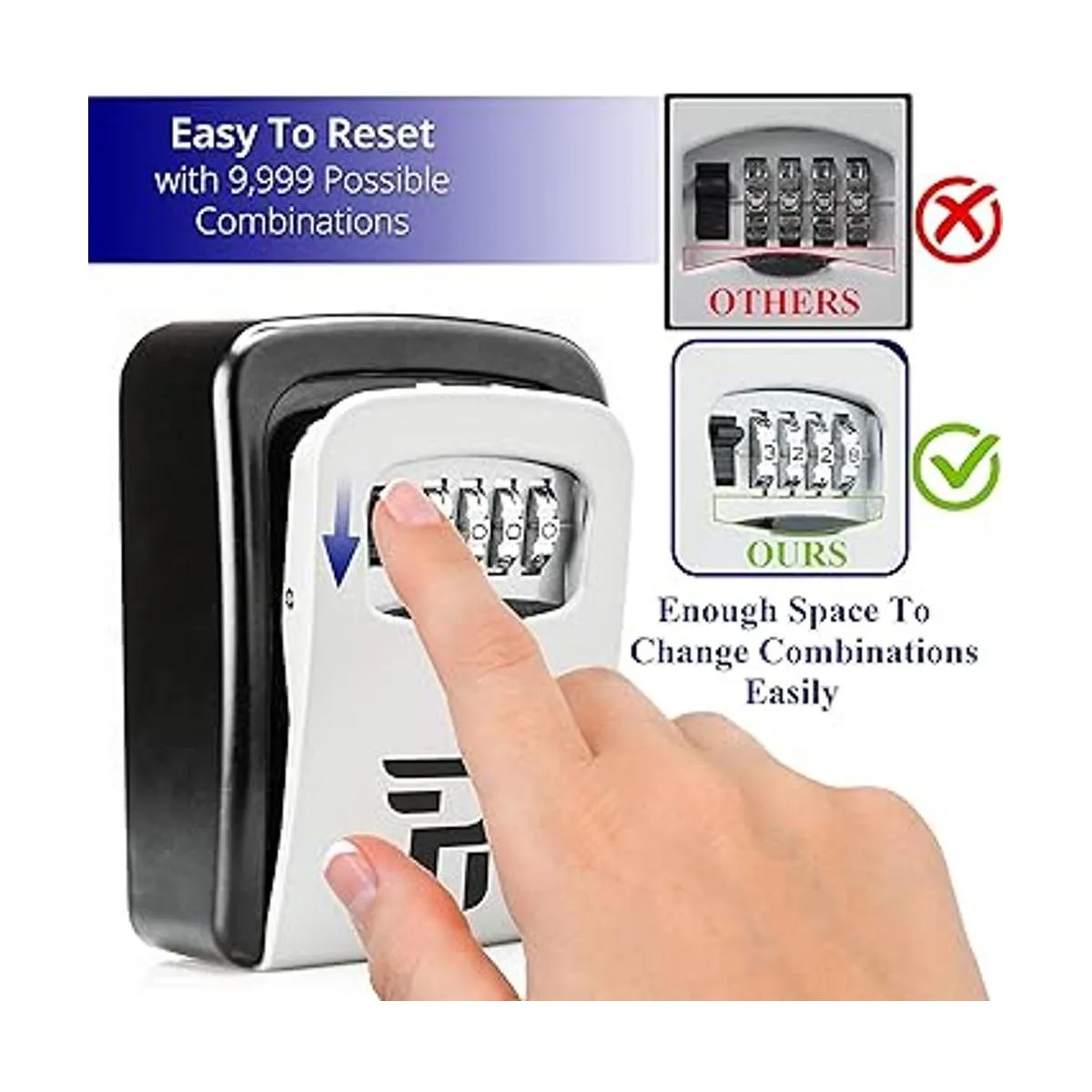 Gran capacidad de almacenamiento; al menos 5 llaves de casa o de coche se pueden bloquear en esta caja de montaje, así como llavero, tarjetas de crédito y memorias USB. Es adecuado para uso en interiores y exteriores y se puede utilizar para acceso de emergencia o familia, mascotas y amigos entrada sin llave al apartamento, garaje, jardín, aula, fábrica, empresa, tienda, universidad, recámara, casa de vacaciones, etc.