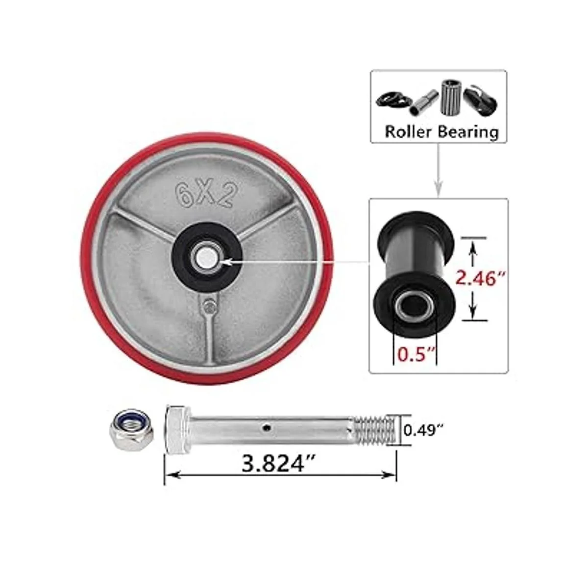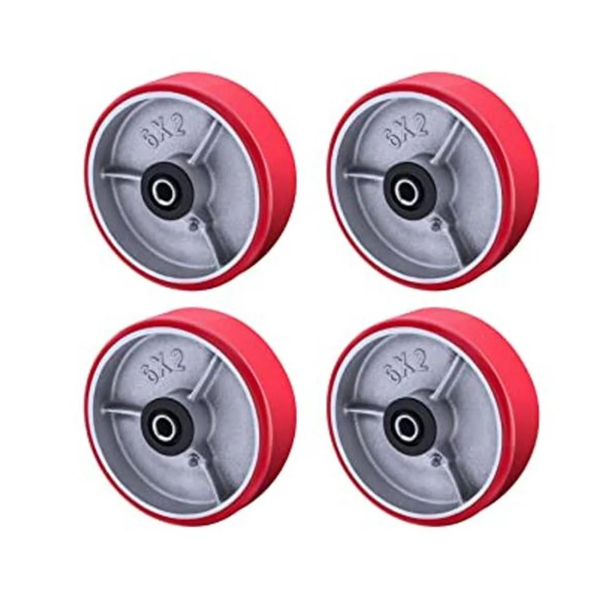 Ruedas de ruedas resistentes de 6 x 2 pulgadas, ruedas giratorias industriales de poliuretano con fuerte capacidad de carga de 5000 libras, ruedas de ruedas resistentes, juego de 4, ampliamente utilizado en caja de herramientas, gato de sendero