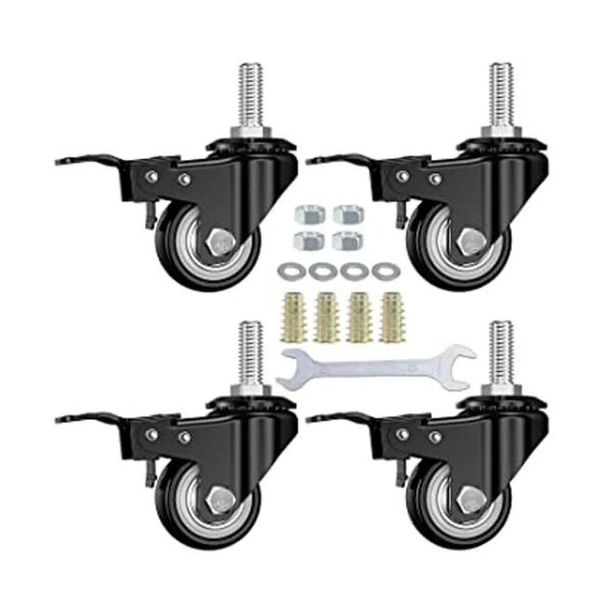Ruedas de vástago DICASAL, frenos dobles negro PU Imperial pulgadas 51618×1 rosca de tornillo 360 ruedas giratorias para carritos de muebles de bricolaje, 4 unidades