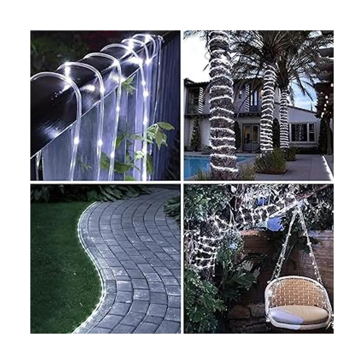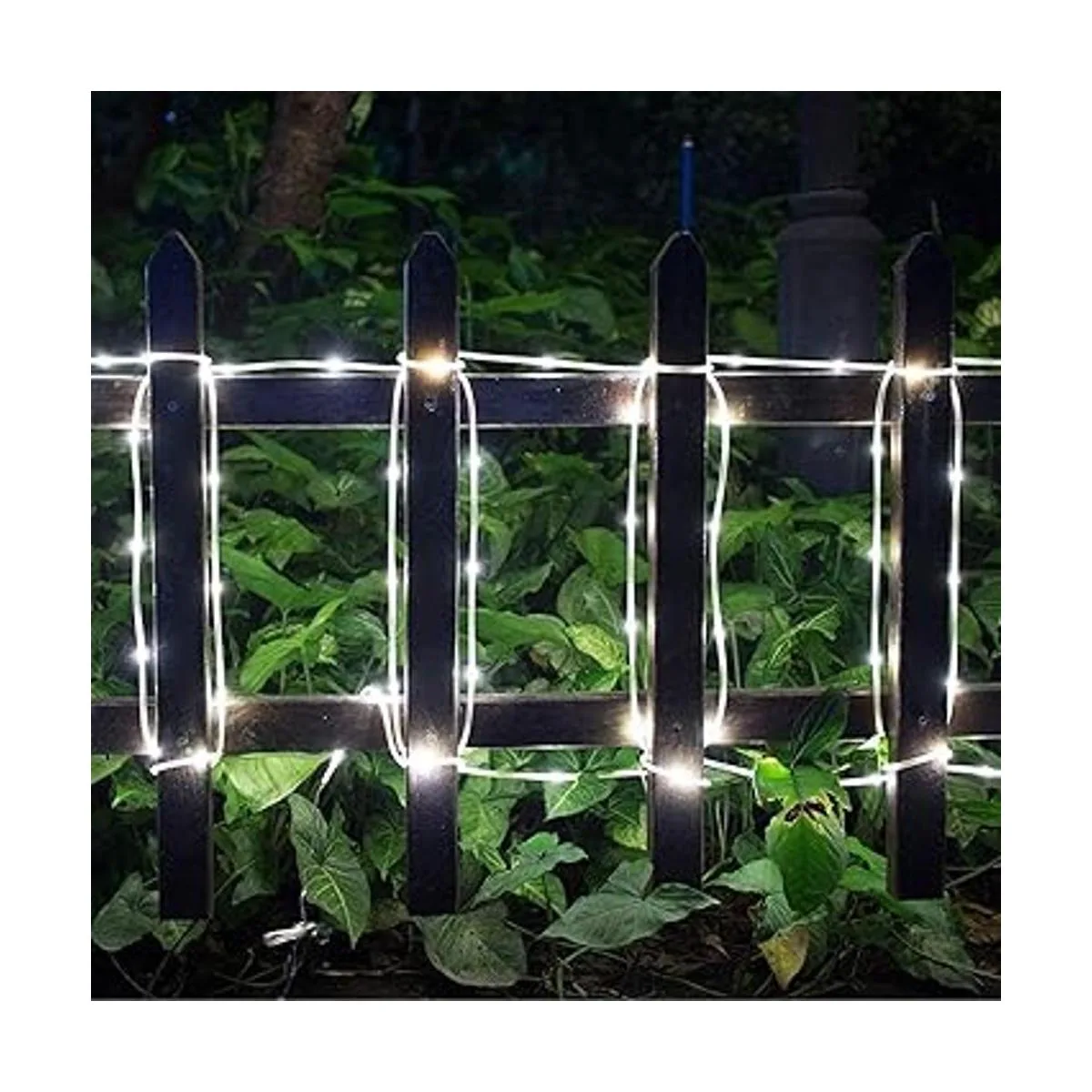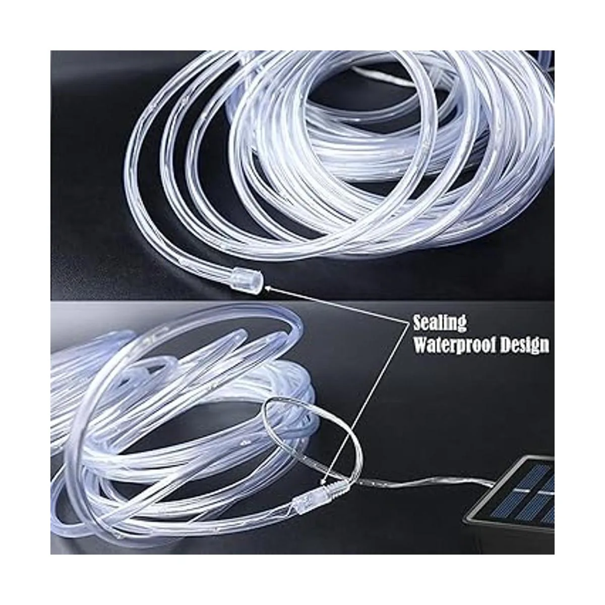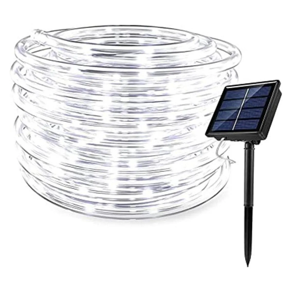 RUICHEN Tira de luces solares para exteriores, 16.5 pies, 50 luces LED de tubo, impermeables, alambre de cobre, para jardín, valla, patio, Navidad, boda, fiesta blanco frío