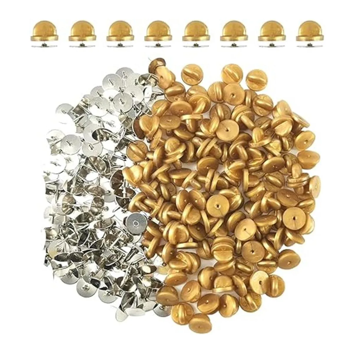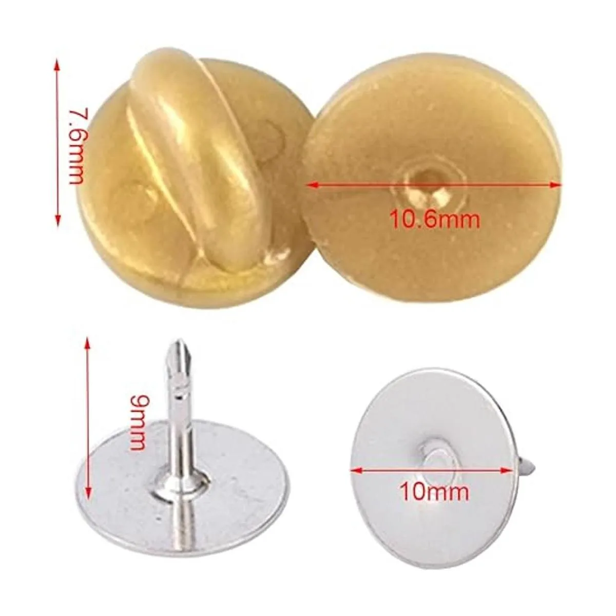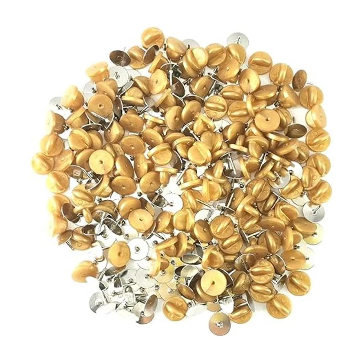 Ruidee Juego de 200 piezas 100 pines de goma con tachuelas de amarre en blanco, pasador de goma de PVC para insignias uniformes, soporte de respaldo, broche de solapa dorado