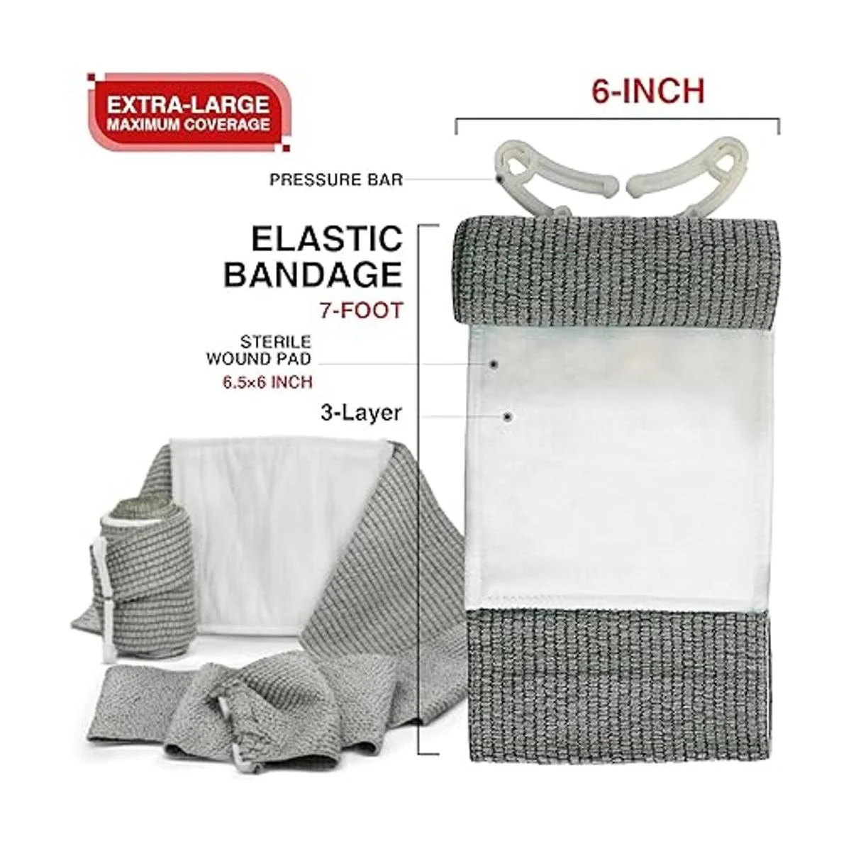 RUIMI Vendaje israelí de 6 pulgadas, 1 paquete de vendas de compresión estériles al vacío para primeros auxilios, emergencia, batalla, heridas, autorescate de 6 pulgadas, 1 paquete