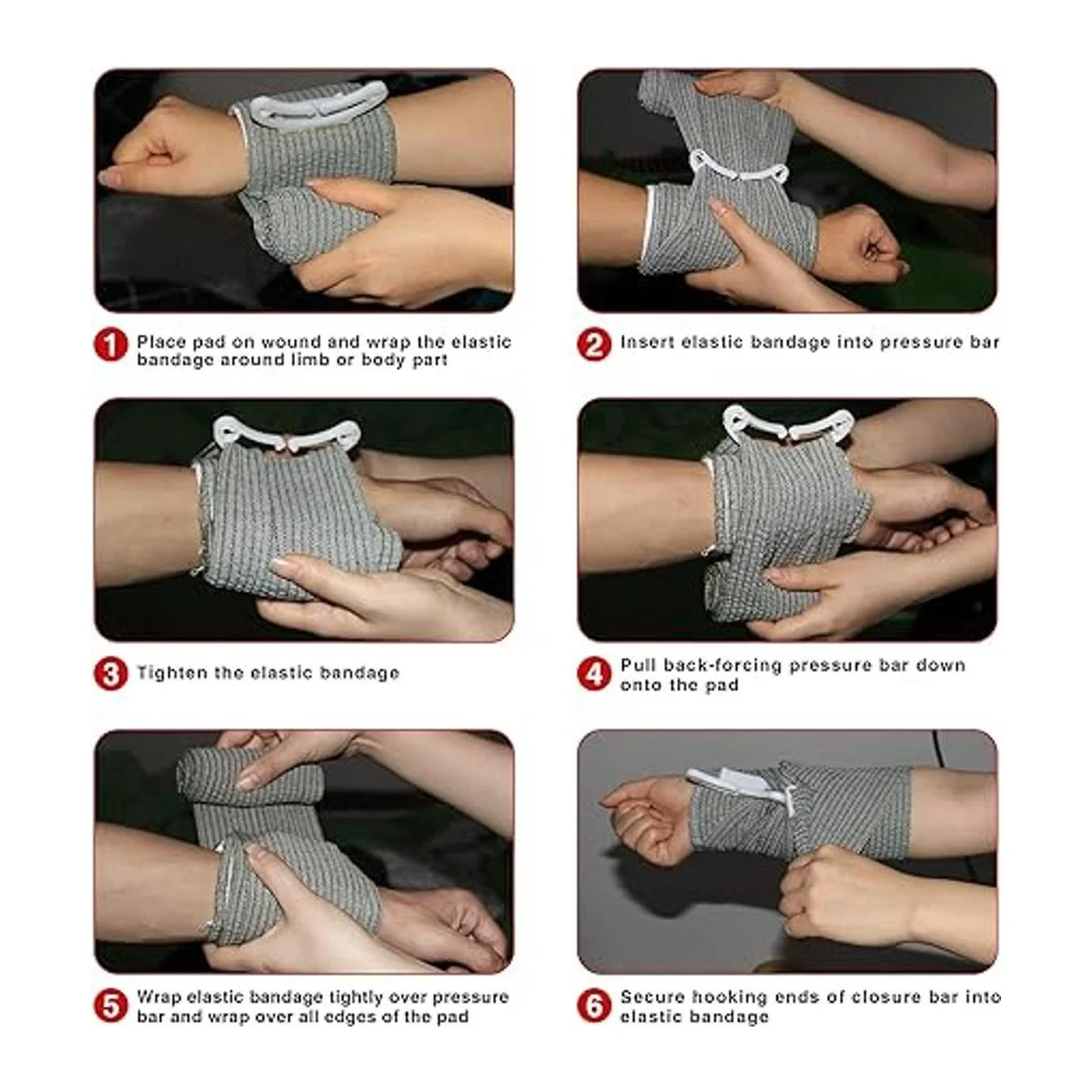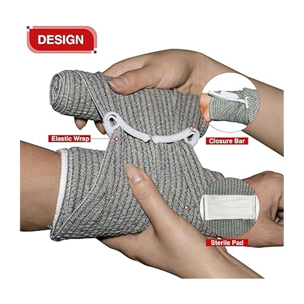 Vendaje hestático rápido: el apósito de batalla israelí Ibd supera mucho el diseño de vendaje general de primeros auxilios, gasa de desinfección integrada, vendaje hemostático rápido, dispositivo integrado a presión, equivalente a un pequeño sistema de emergencia, ampliamente utilizado en supervivencia al aire libre, puedes utilizar este vendaje elástico de 11.8 ft como anillos, férulas e incluso un simple torniquete Una emergencia