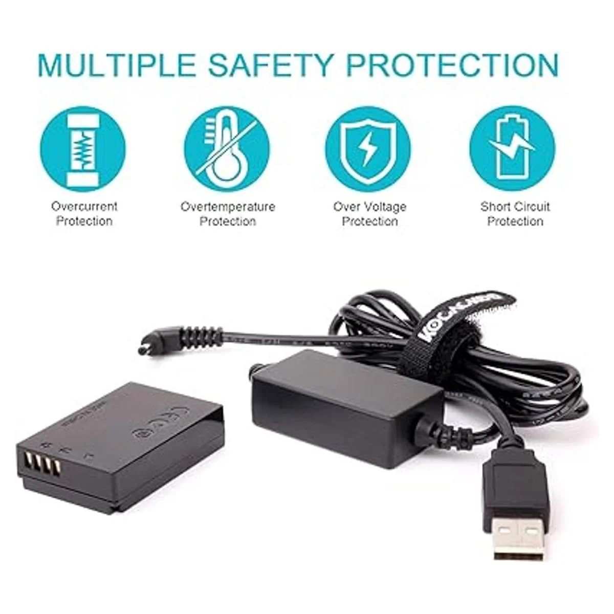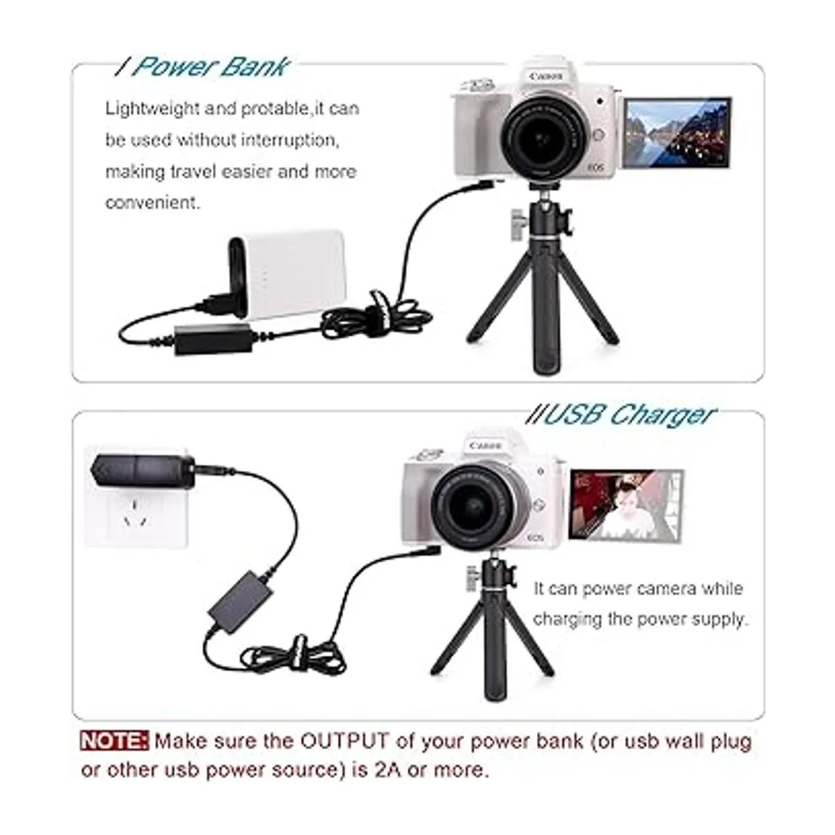 Función: toma el lugar de la batería tipo LPE12 y proporciona una conexión a la fuente de alimentación para un funcionamiento continuo a largo plazo de tu cámara. Es la mejor opción para fotografía y grabación de vídeo durante mucho tiempo al aire libre o en interiores.