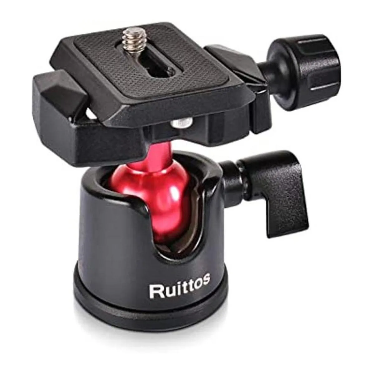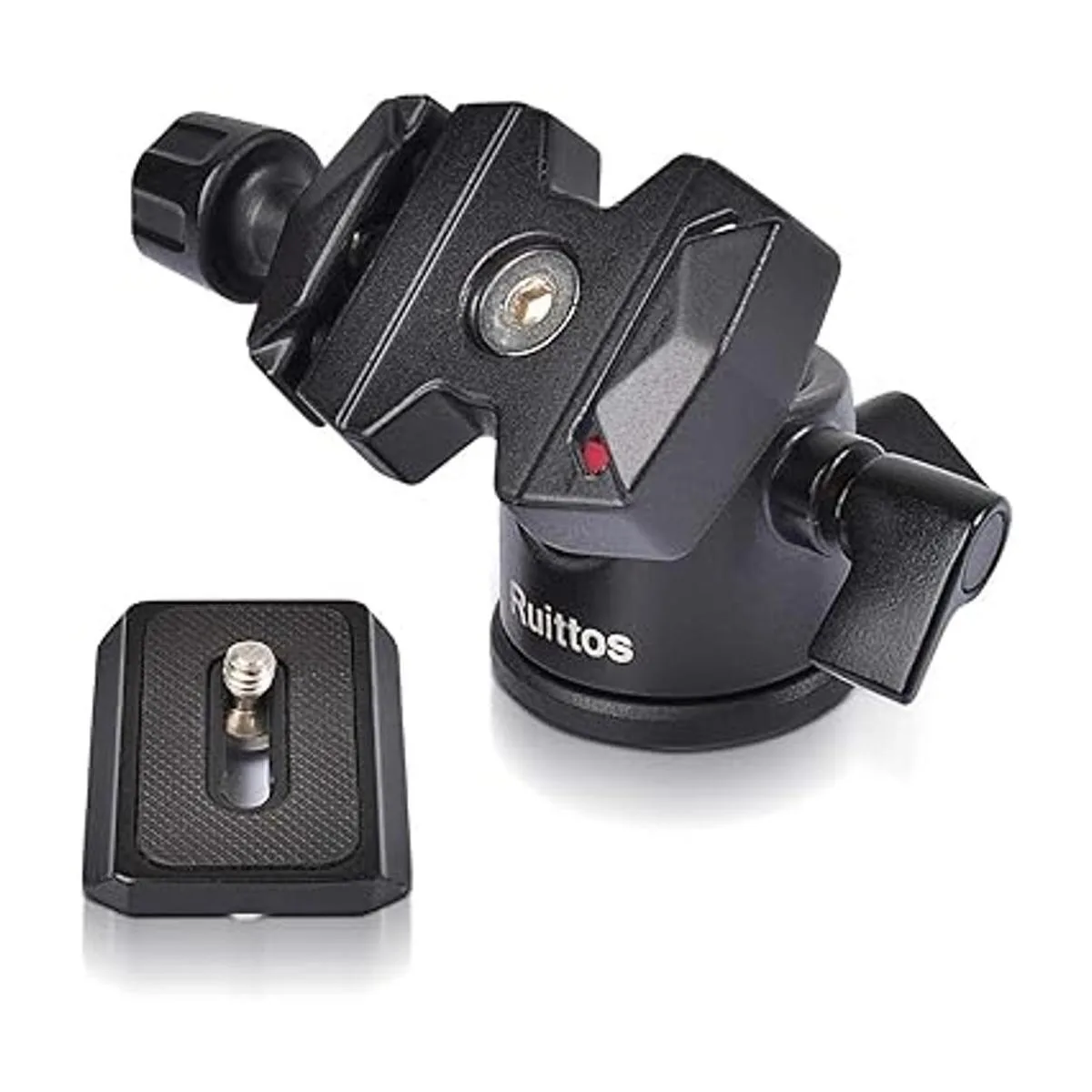Ruittos Cabezal de bola para trípode, cabezal de cámara de vídeo de 360 grados, cabezal de bola panorámico con zapata rápida de 14 pulgadas y nivel de burbuja para cámara réflex digital, trípode monopié, carga hasta 11 libras