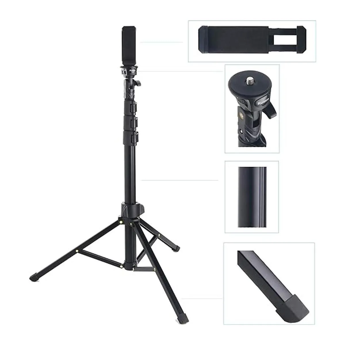Este soporte de trípode para teléfono admirable altura de 17.5 a 54 pulgadas, extensible: 4 secciones ajustables, y se puede bloquear y asegurar a cualquier altura intermedia. Se puede colocar en el suelo o la mesa, la pata de goma antideslizante ayuda a que se mantenga resistente.