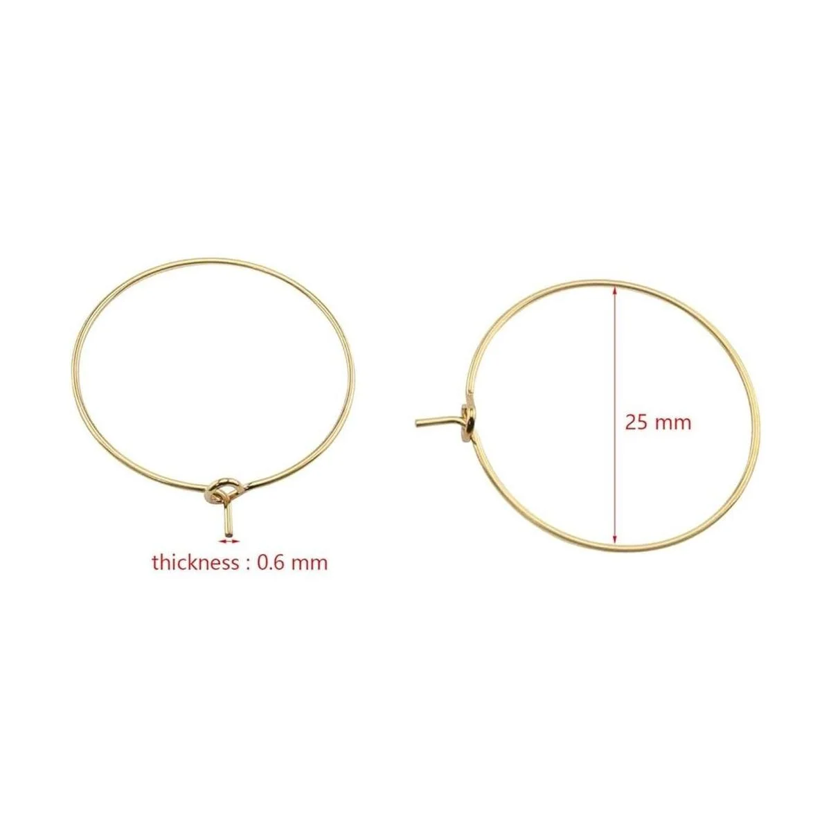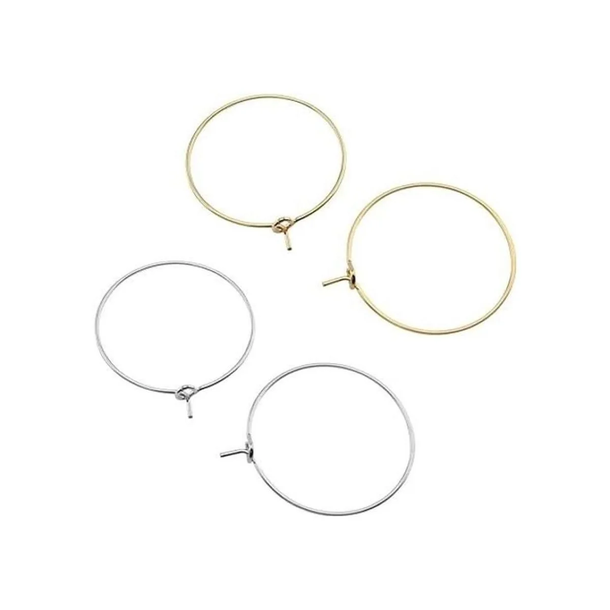Ruiwaer 100 anillos redondos para copas de vino, anillos de aro para pendientes de oreja de vinos, pendientes de aro de alambre para joyas de bricolaje oro x 50 plata x 50