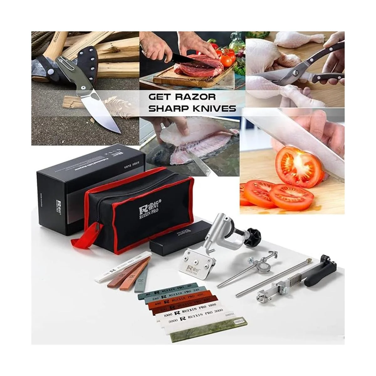 RUIXIN PRO RX008 Sistema de afilador de cuchillos con 12 piedras de afilar, diseño giratorio de 360, acero inoxidable de ángulo fijo, cuchillas de afilado de cuchillos de cocina profesional de chef de acero inoxidable de ángulo fijo, herramienta de pulido fino