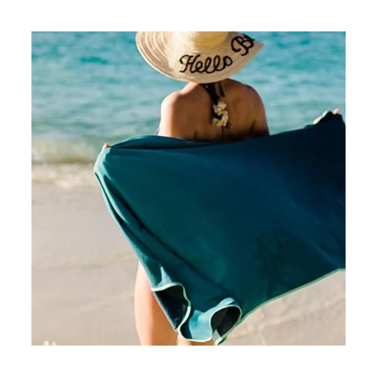 Lazo oculto para colgar: terminaste con tu toalla en todas partes Cuélgalo en una rama o un gancho con el lazo oculto para colgar y déjalo secar.