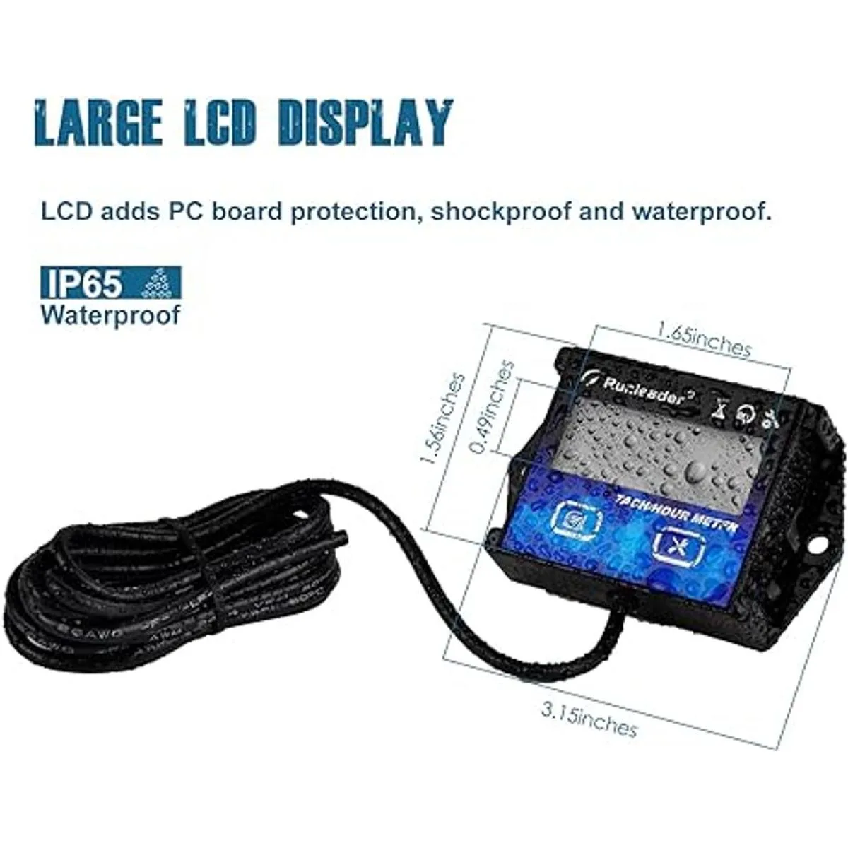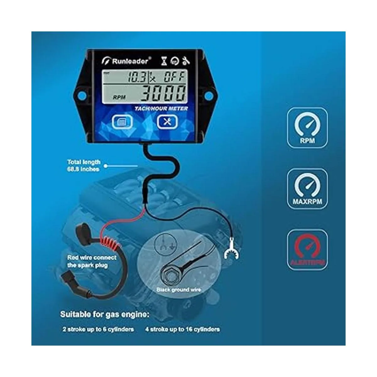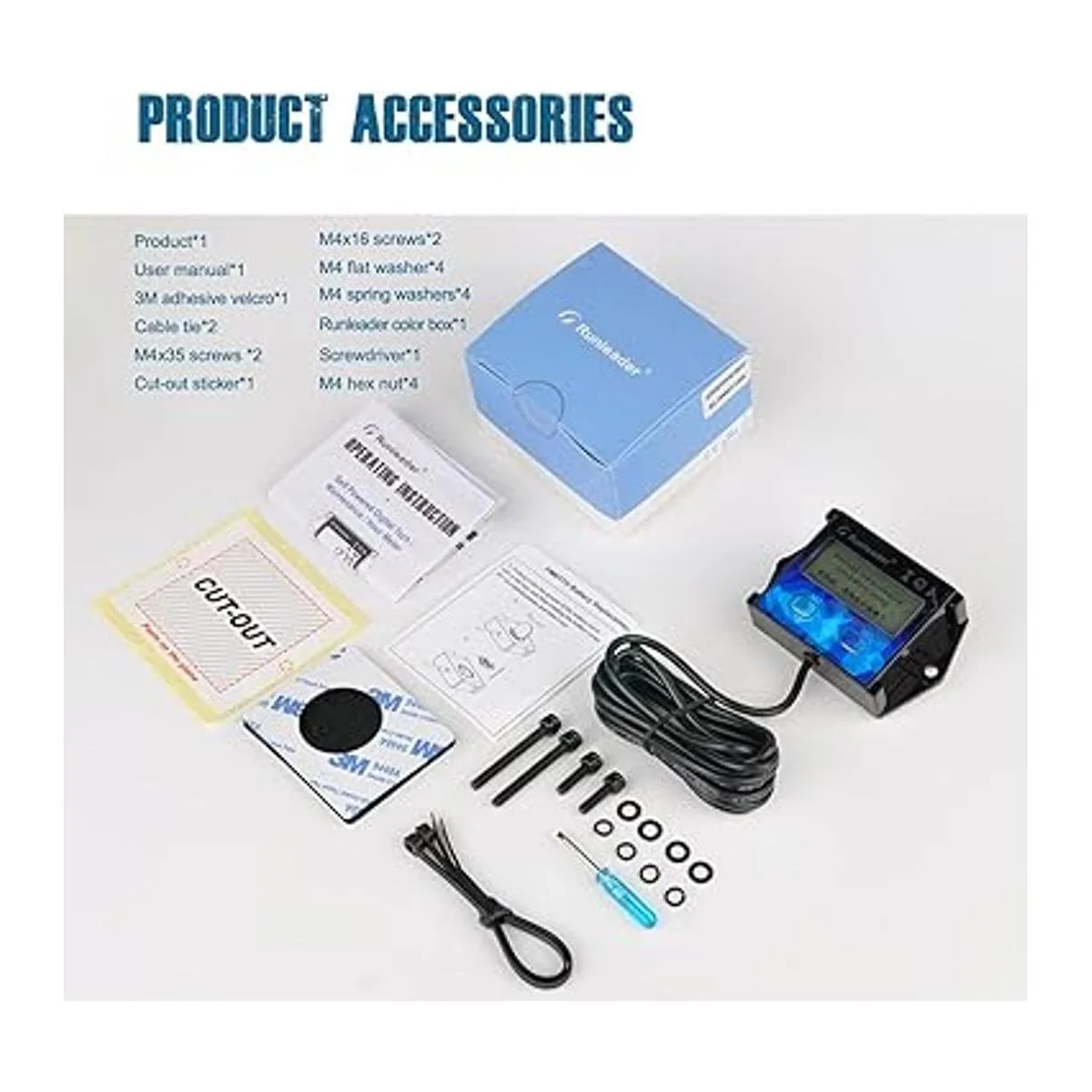 Runleader Medidor digital LCD de tacóhora, recordatorio de mantenimiento, pantalla múltiple con retroiluminación para tractor de jardín, divisor de madera, cortador de cepillo, generador, compresor, ATV, paramotor, motor fueraborda, moto.