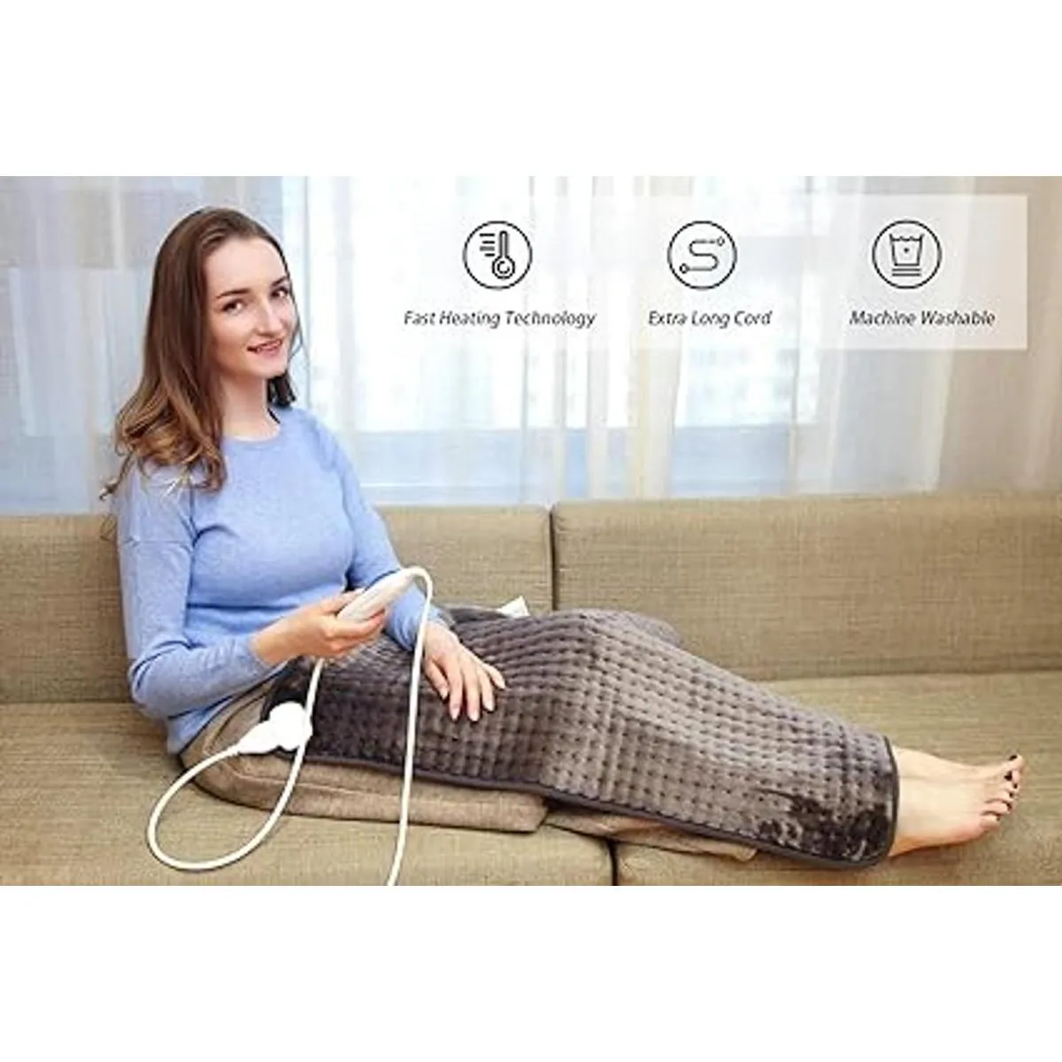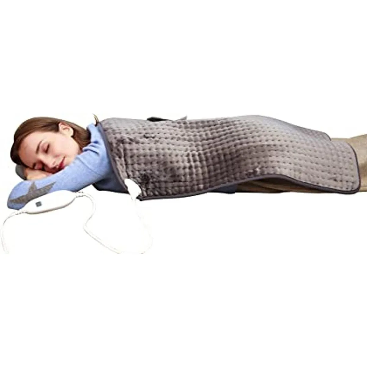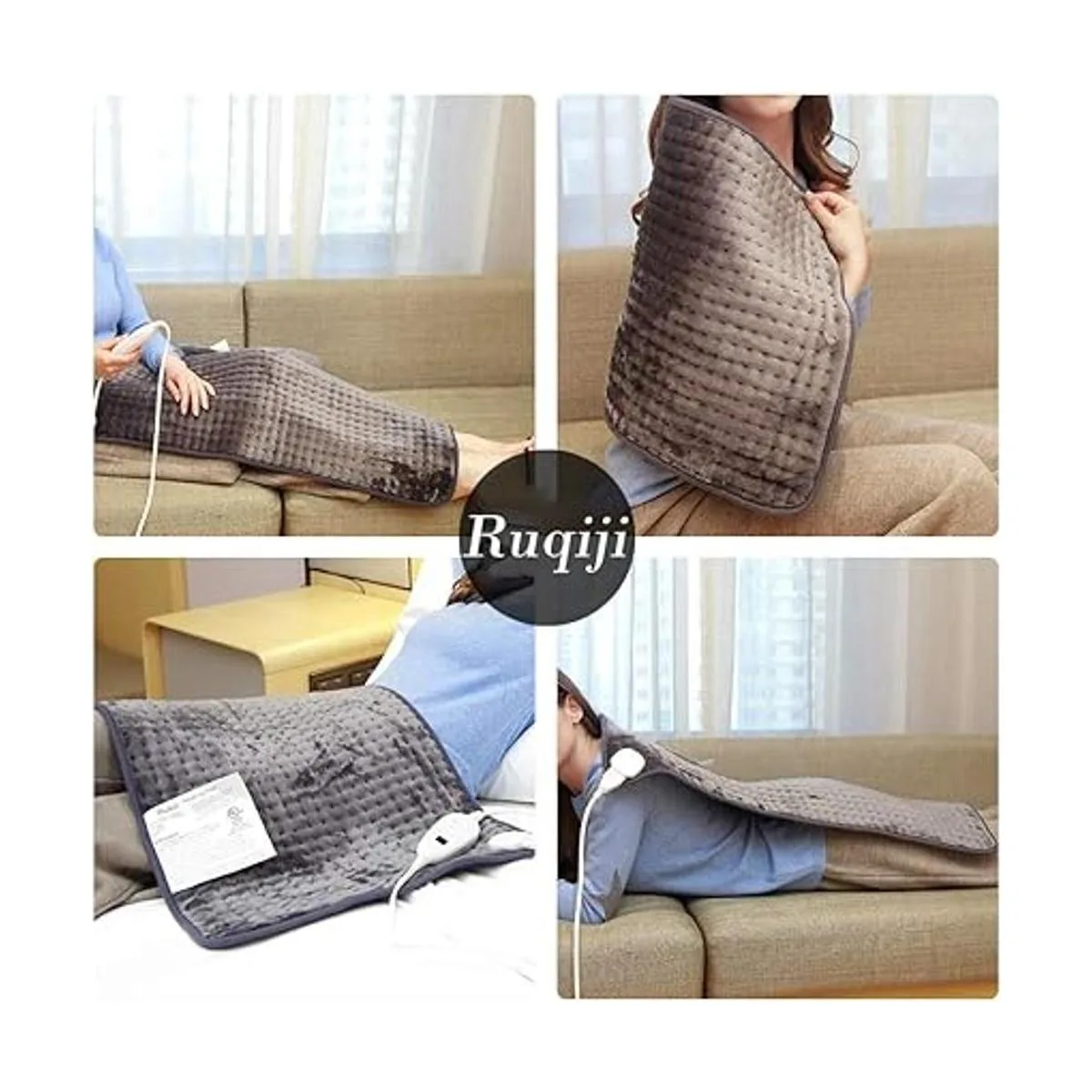 Ruqiji Almohadilla de calefacción de tamaño king XXXL de 18.9 x 32.7 in con tecnología de calentamiento rápido y 6 ajustes de temperatura, almohadilla de calefacción eléctrica de franelaalivio del dolor para espalda, cuello, hombros, abdomenpiernas gris oscuro