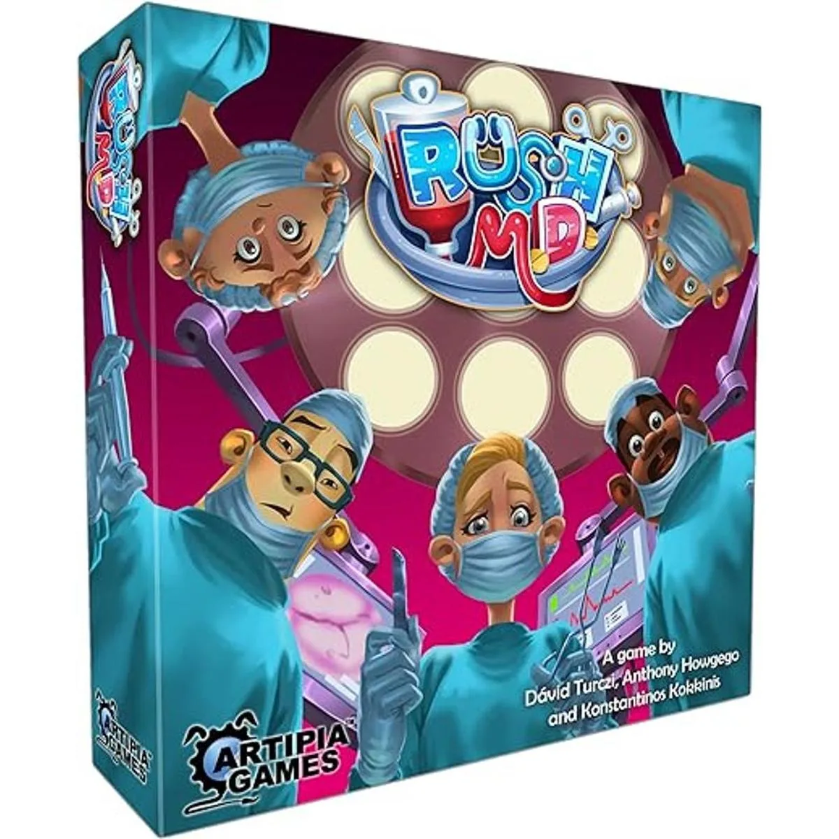 Rush M.D. Juego de mesa cooperativo Artipia Games, colocación de trabajadores, estrategia, dileridad, a partir de 14 años, 14 jugadores, 3045 minutos