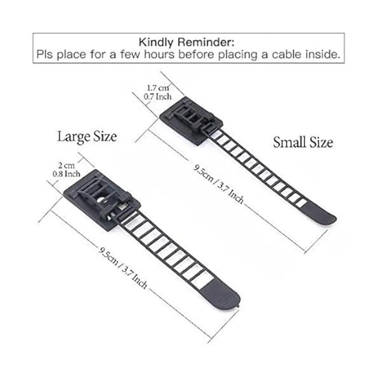 Ajustable y reciclable: diseño de cremallera, por lo que puedes abrir y cerrar fácil y rápidamente para añadir o quitar cables de acuerdo con el tamaño de tu cable. Bridas negras con diseño ajustable, pueden satisfacer tus diferentes necesidades. Haz que los cables se aten de forma estable. Aunque la adherencia de la almohadilla autoadhesiva es muy fuerte, si la almohadilla autoadhesiva pierde su eficacia, también puedes utilizar tornillos para fijar las bridas de cables, ya que los artículos con pequeños agujeros integrados, se pueden reciclar.
