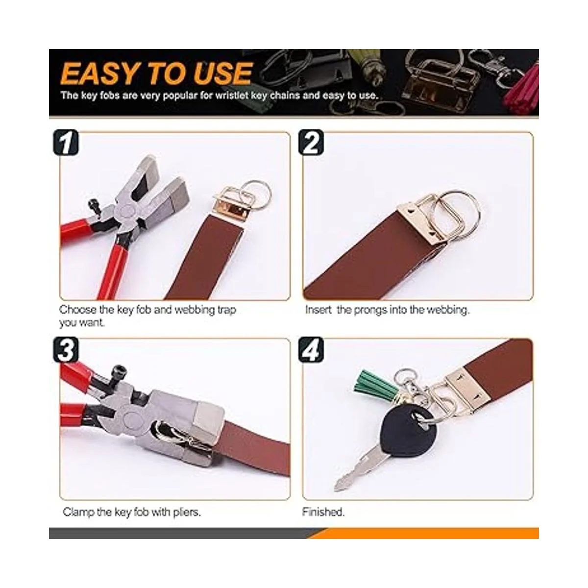 Kit de gran valor: recibirás un kit de 51 piezas de accesorios para llavero, que incluye 20 piezas de accesorios para llavero de 1 pulgada con llaveros en 4 colores diferentes 1 alicates para llavero con punta de goma 20 colgantes de borla y 10 ganchos giratorios en 2 colores diferentes. Ideal para fijar llavero de muñeca, cordones, llaveros de piel sintética, borla y otros suministros de llavero de bricolaje.