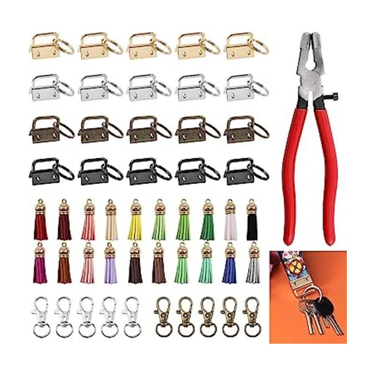 1. Gran valor y completo: accesorios para llavero de 1 pulgada con llaveros alicates para llavero con punta de goma colgantes de borla 10 ganchos giratorios en 1 kit, 51 piezas para satisfacer tus diferentes necesidades.