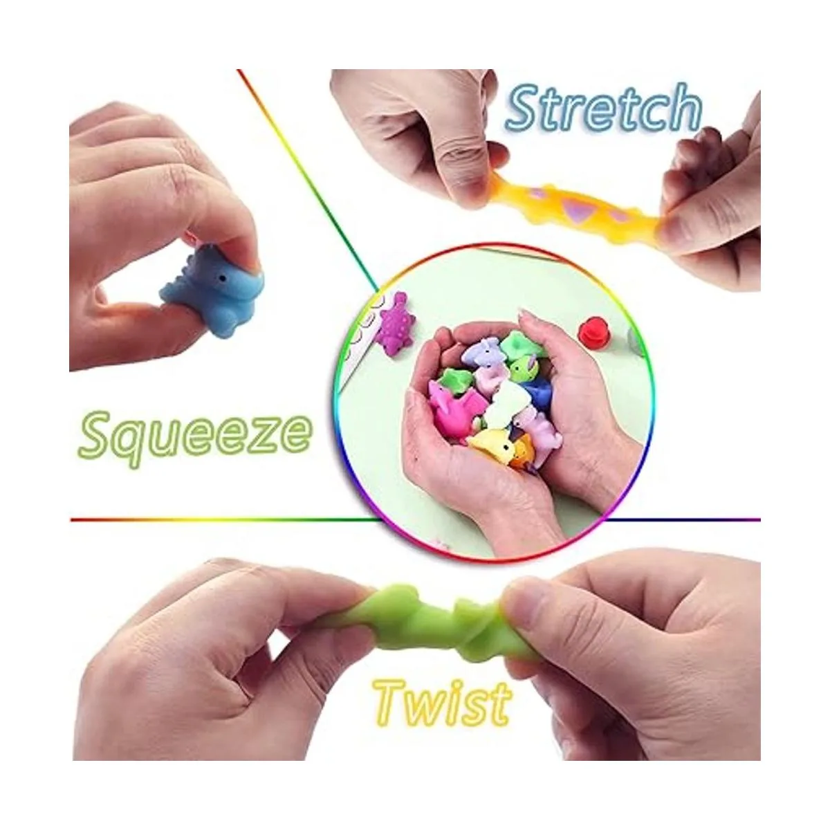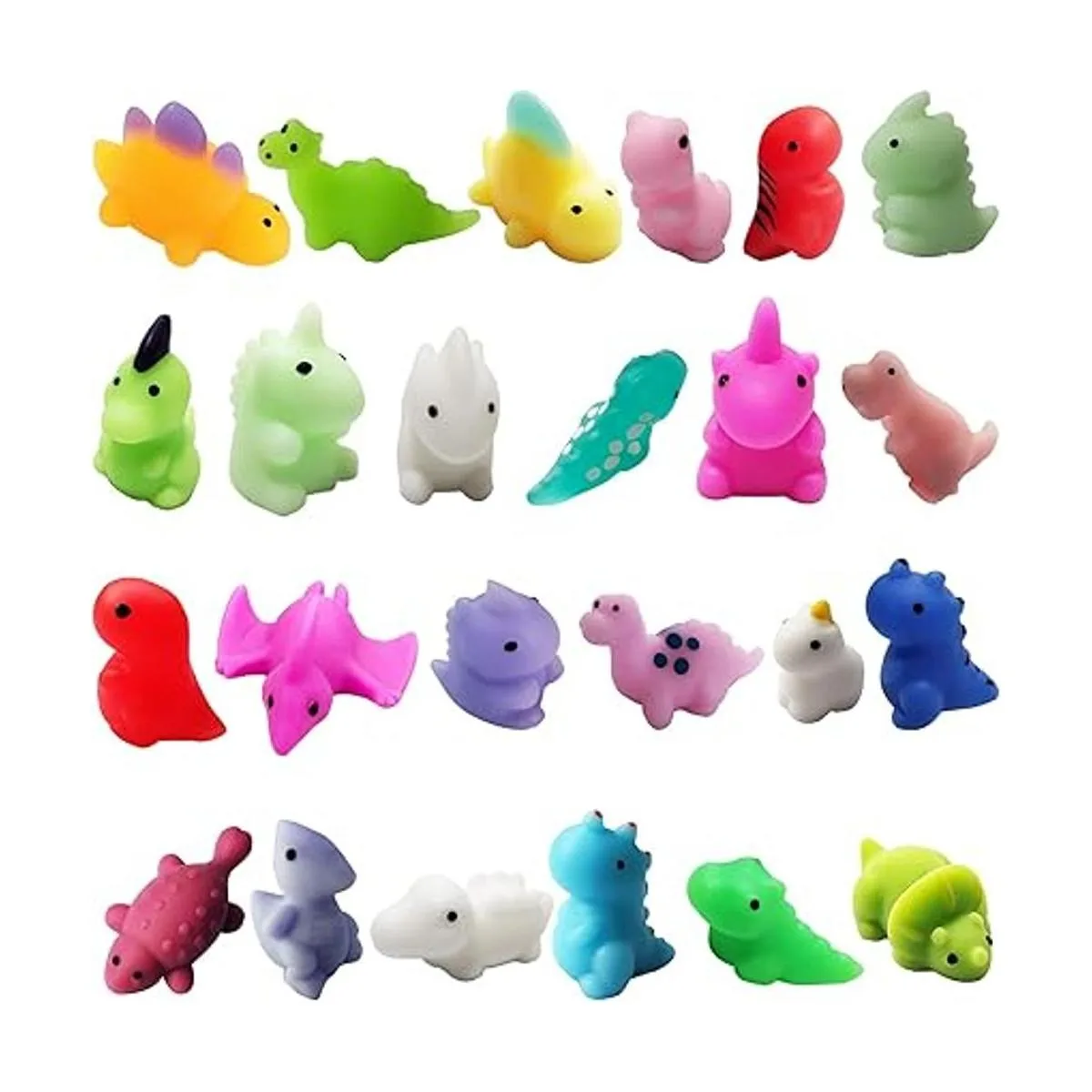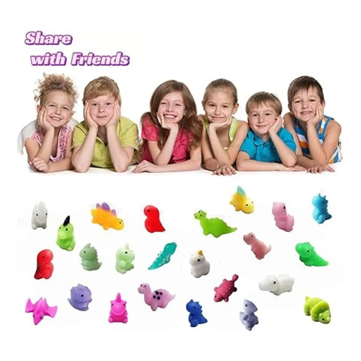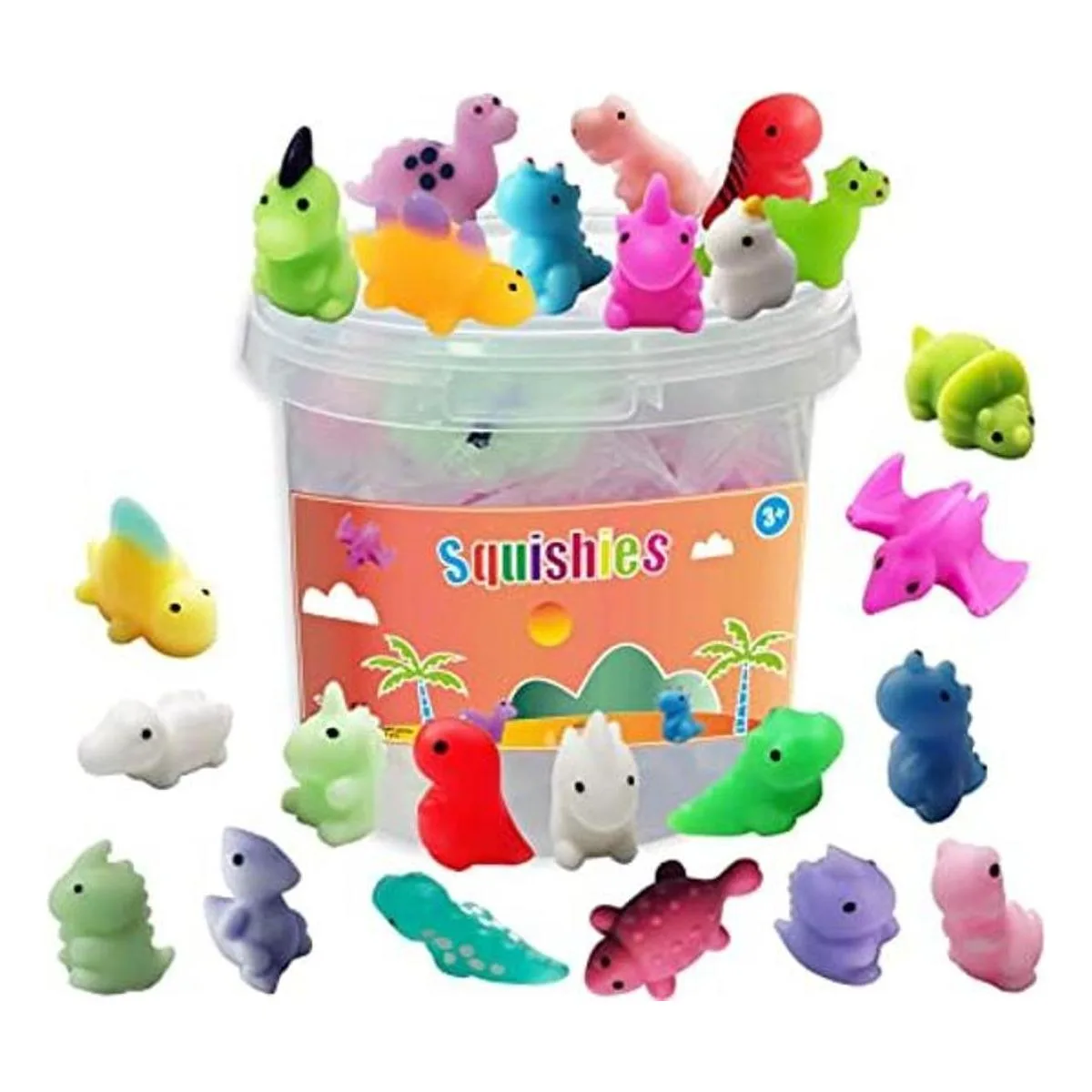RUURHUO 24 unidades de juguetes blandos Mochi Kawaii Squishies dinosaurio con caja de almacenamiento, mini juguetes para la ansiedad para niños, regalos de cumpleaños, cestas de Pascua rellenos