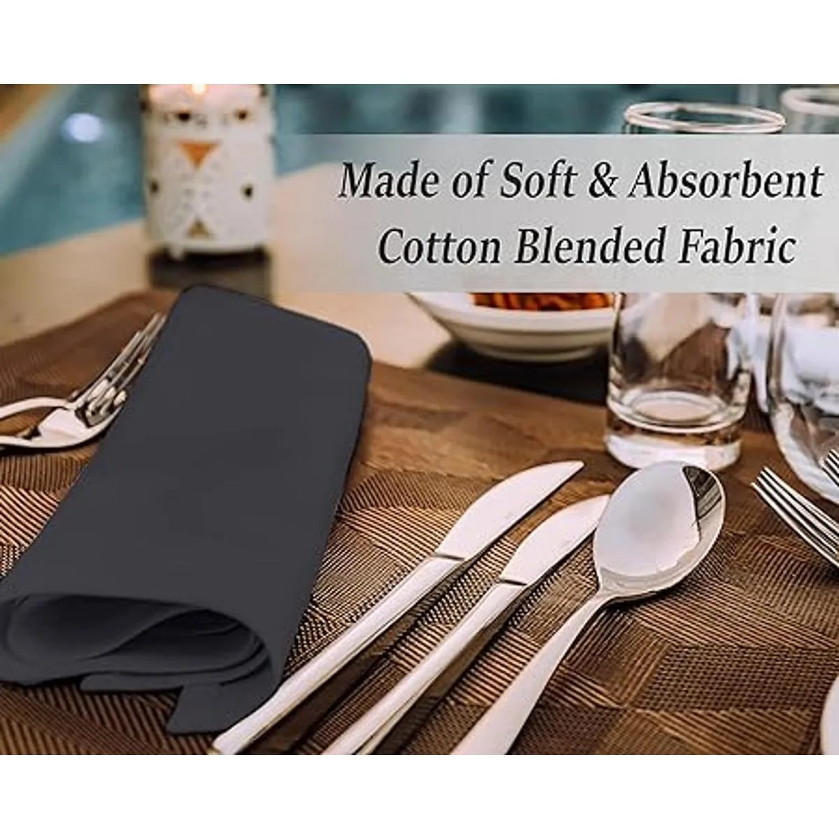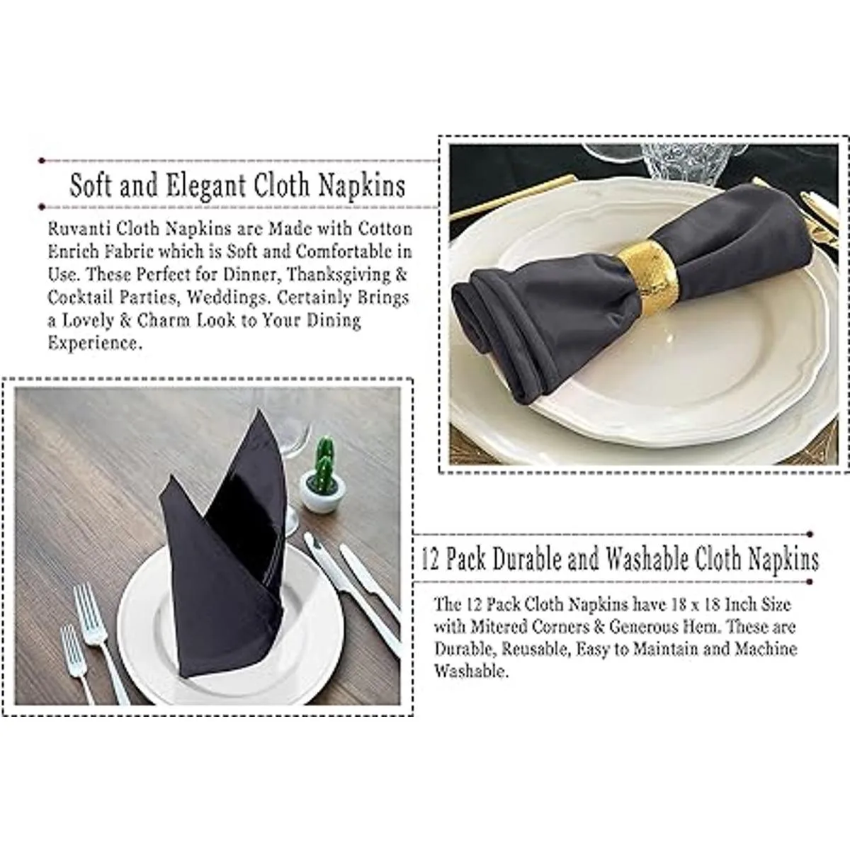 Ruvanti Servilletas de algodón 12 unidades, servilletas de tela suaves y cómodas, servilletas de lino de calidad hotelera de lujo Servilletas de mesa perfectas para cenas familiares, bodas, Polialgodón, Gris oscuro, 1818