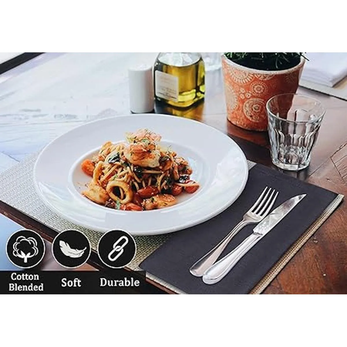 Elegantes colores y costuras clásicas: colores encantadores como los de nuestras servilletas proporcionan un impacto delicado y elegante a tu vitrina. Ruvanti ofrece servilletas de tela en diferentes colores, asegurando que encontrarás el color perfecto para tu mesa. Mientras que el color es rápido para mayor durabilidad, las servilletas de algodón puro de Ruvanti están libres de productos químicos peligrosos y materiales sintéticos.