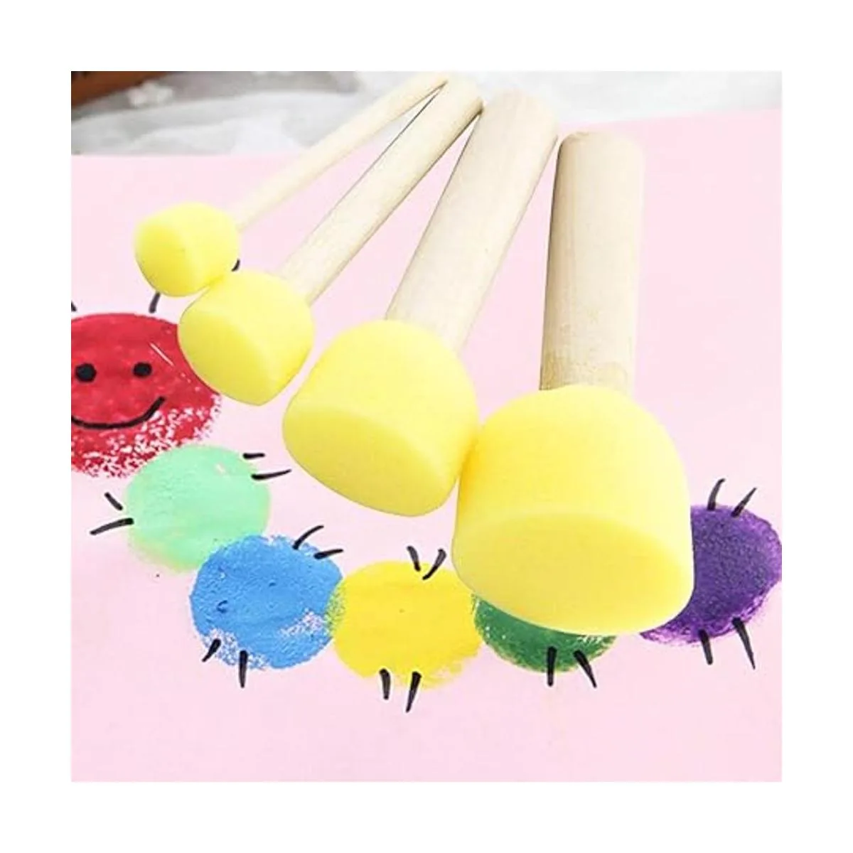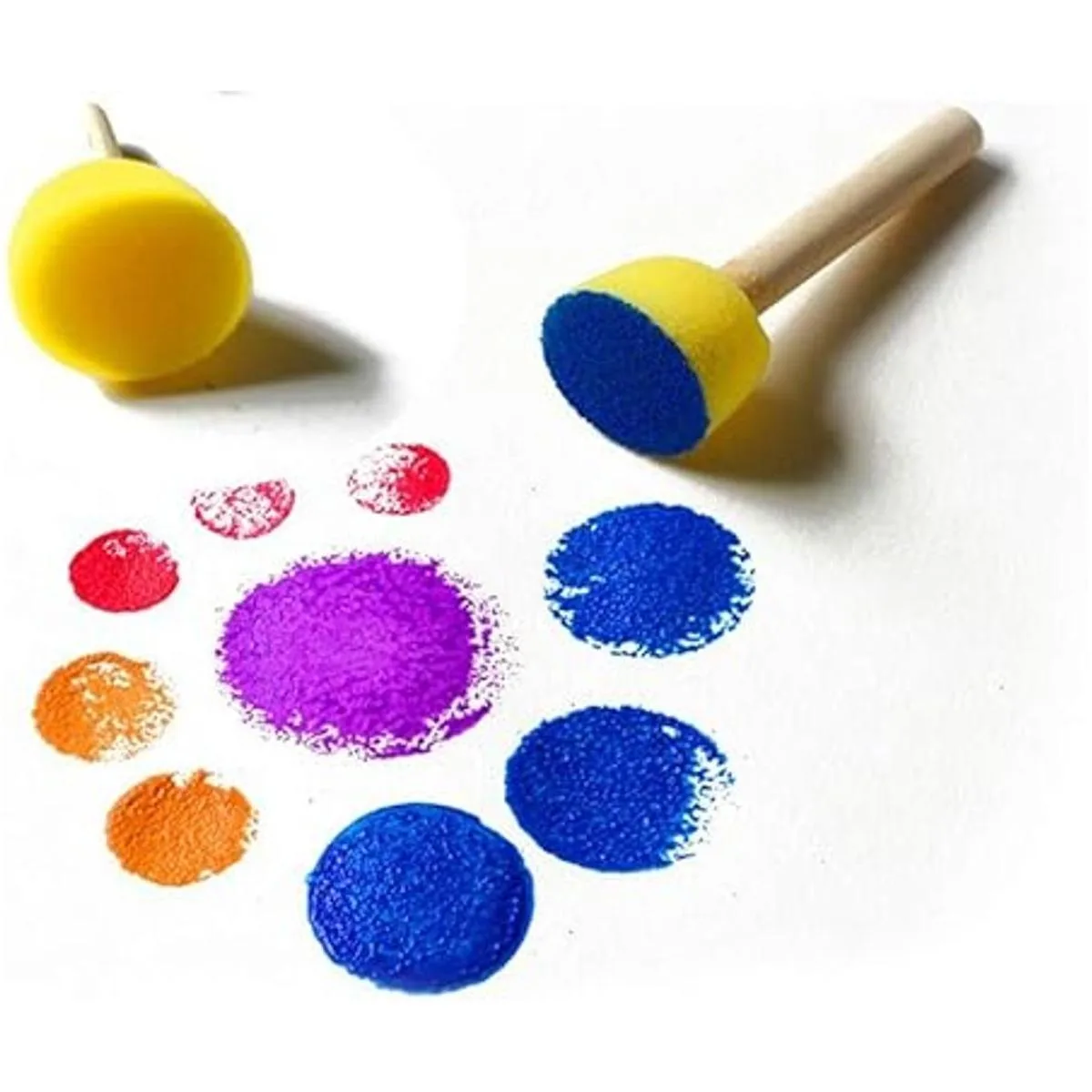 Ruwado 8 piezas de espuma amarilla con mango de madera esponja de pintura cabeza redonda kit de tamaño surtido para niños pintura herramientas conjunto DIY arte arte proyecto