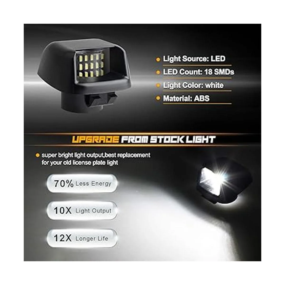 Más brillante que las bombillas de stock: 18 chips LED SMD de alta potencia integrados, salida de luz blanca súper brillante de 6500 K ilumina la licencia trasera de manera eficaz, fácil de leer tu placa por la noche. Con unidad de control CANBUS, sin código de error, un mejor reemplazo para luces de matrícula OEM