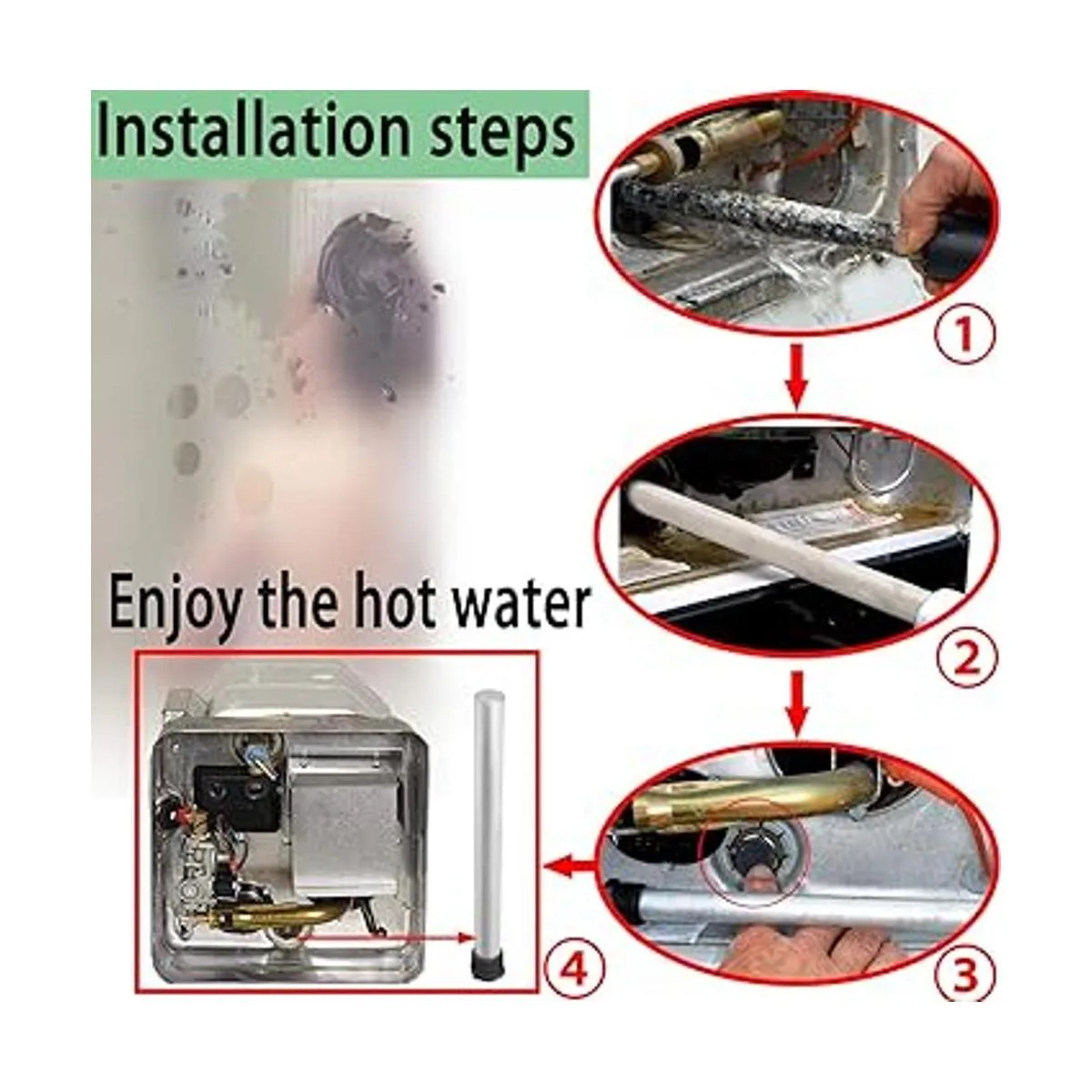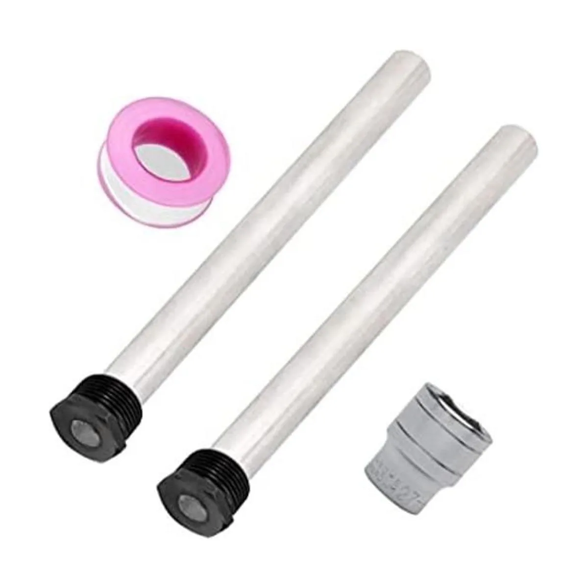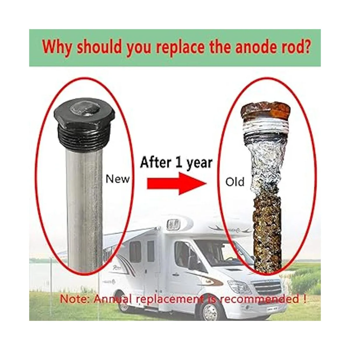 Para su uso en calentadores de agua RV, barra de ánodo de magnesio, absorbe la acción corrosiva causada por el agua caliente, extiende la vida del tanque del calentador de agua. Las varillas de ánodo deben ser reemplazadas regularmente, siempre mantén un repuesto en tu caravana.