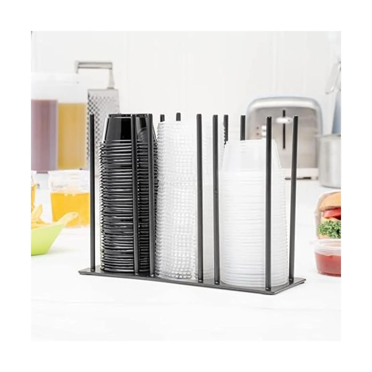 RW Base organizador de vasos y tapa de 8.25 x 3 x 6 pulgadas, 1 soporte de taza y tapa de 3 secciones, diseño horizontal, compacto, dispensador de taza y tapa de hierro negro, para encimeras y almacenamiento, para restaurantes