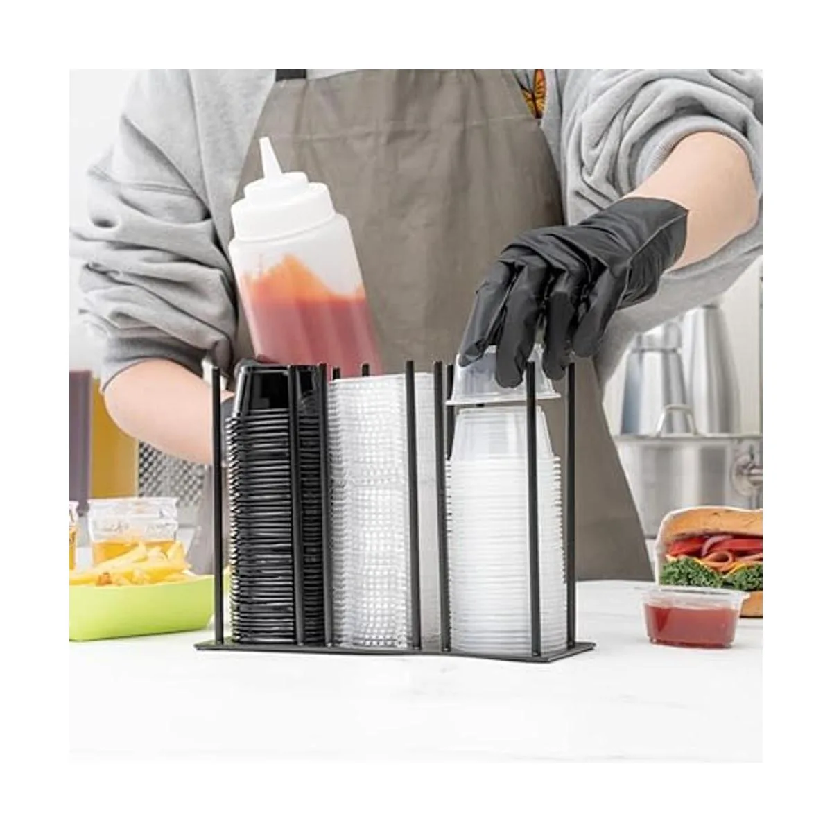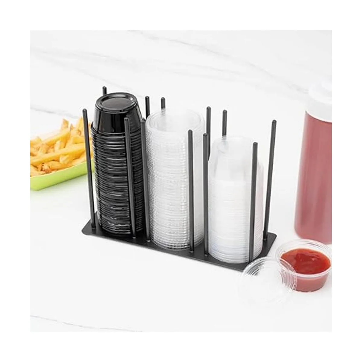 Fácil organización: con 3 secciones integradas, esta exhibición de condimentos mantiene las tazas y tapas de salsa perfectamente separadas, lo que te permite preparar salsas y aderezos sin esfuerzo para los invitados.