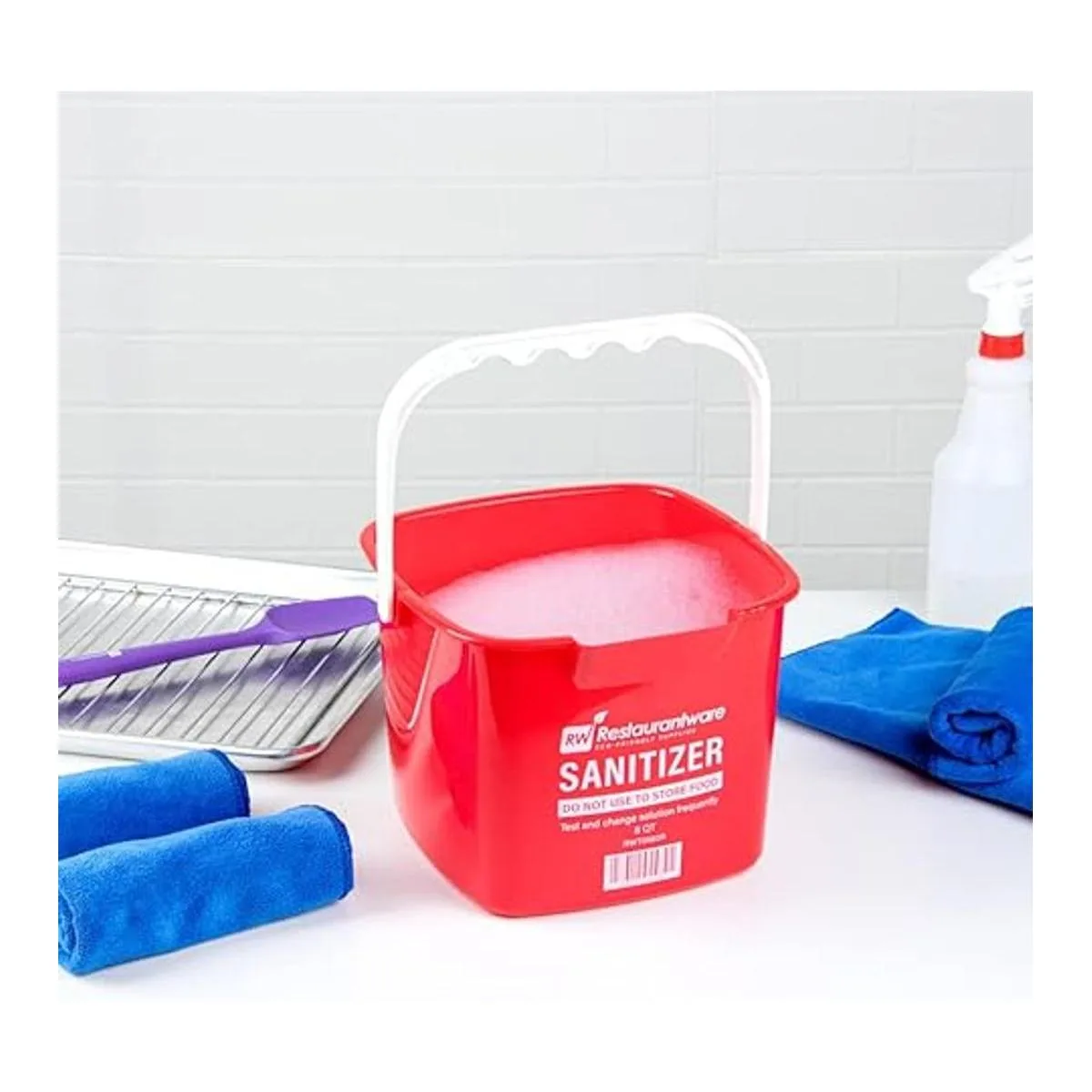 RW Clean Cubo de limpieza de 8 cuartos de galón, 1 cubo cuadrado de detergente, con medidas, boquilla y mango integrados, cubo de plástico rojo, para uso doméstico o comercial, artículos de restauración