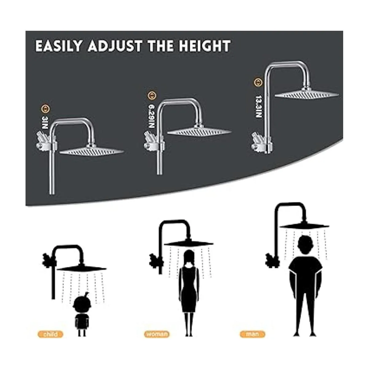Cabezal de ducha de lluvia de 8 pulgadas: el cabezal de ducha de lluvia utiliza una tuerca de rótula sólida ajustable en ángulo de rotación de 360 grados para una conexión fiable sin fugas, 81 boquillas de silicona estrechamente agrupadas evitan la acumulación de cal y agua dura. Las boquillas de silicona suave pueden eliminar fácilmente los minerales acumulados para un rendimiento duradero. Cada cabezal de ducha de lluvia tiene un caudal de 3.2 galones por minuto GPM.