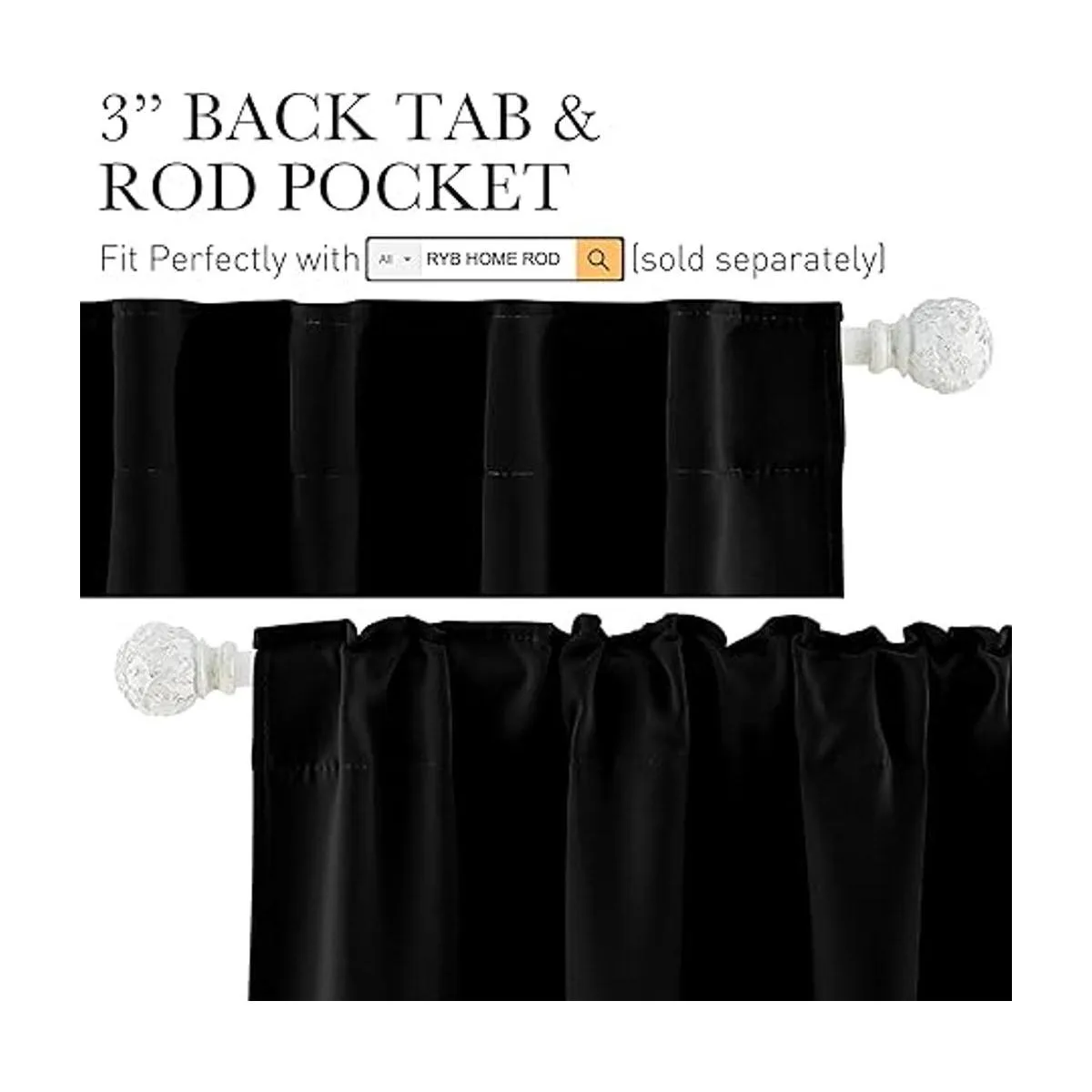 RYB HOME Par de cortinas opacas lisas para decoración de ventanas, paneles de bloques de luz para dormitorio, cocina, oficina, cortinas de privacidad para regalo, 42 pulgadas de ancho x 54 pulgadas de largo, negro, juego de 2