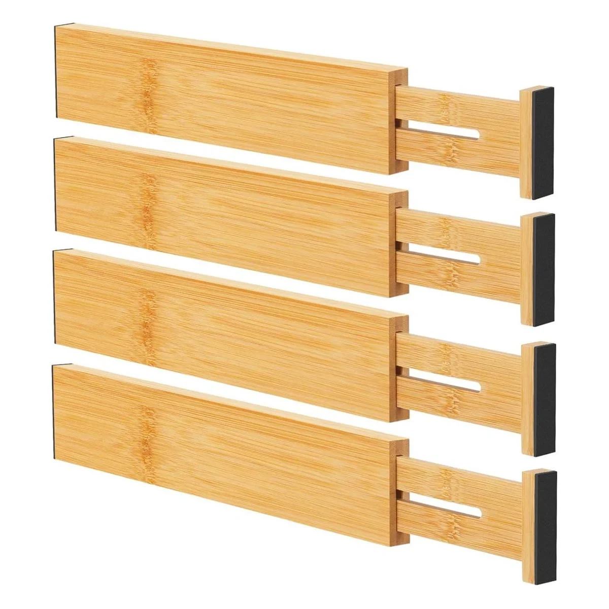 Ryqtop Organizadores divisores de bambú para cajones, organizador de cajones de cocina, divisor de cajones ajustable para ropa, cocina, aparador, dormitorio, cuarto de baño y oficina, paquete de 4