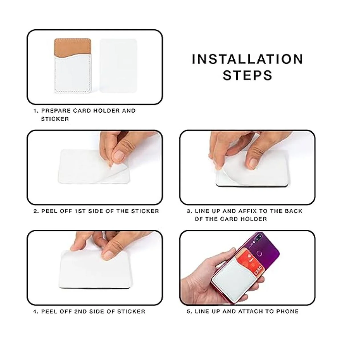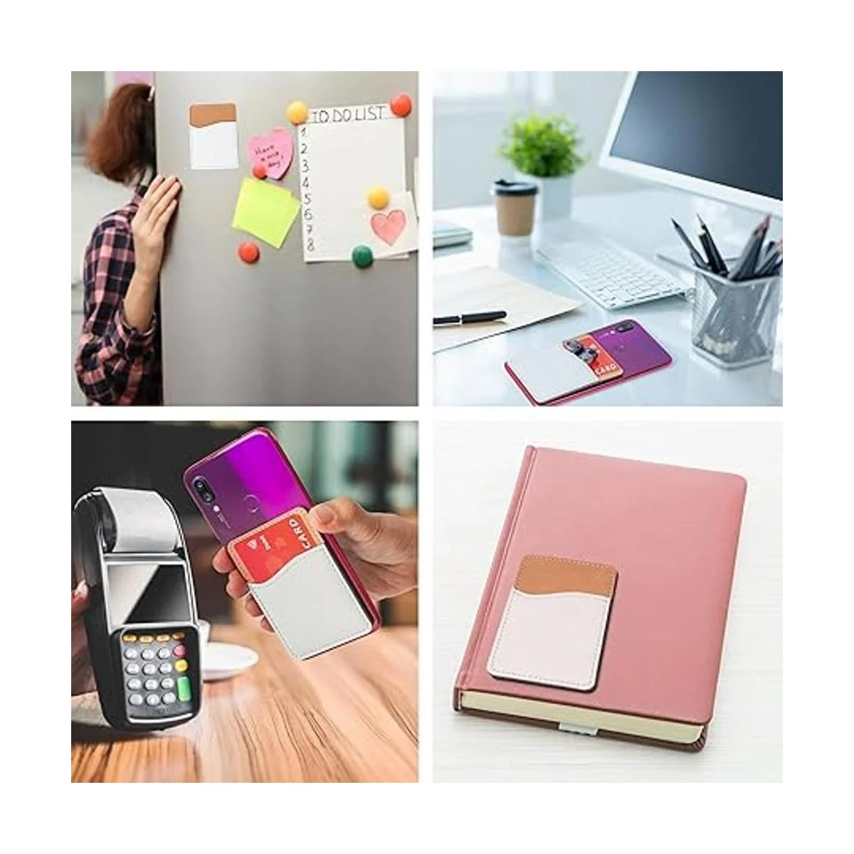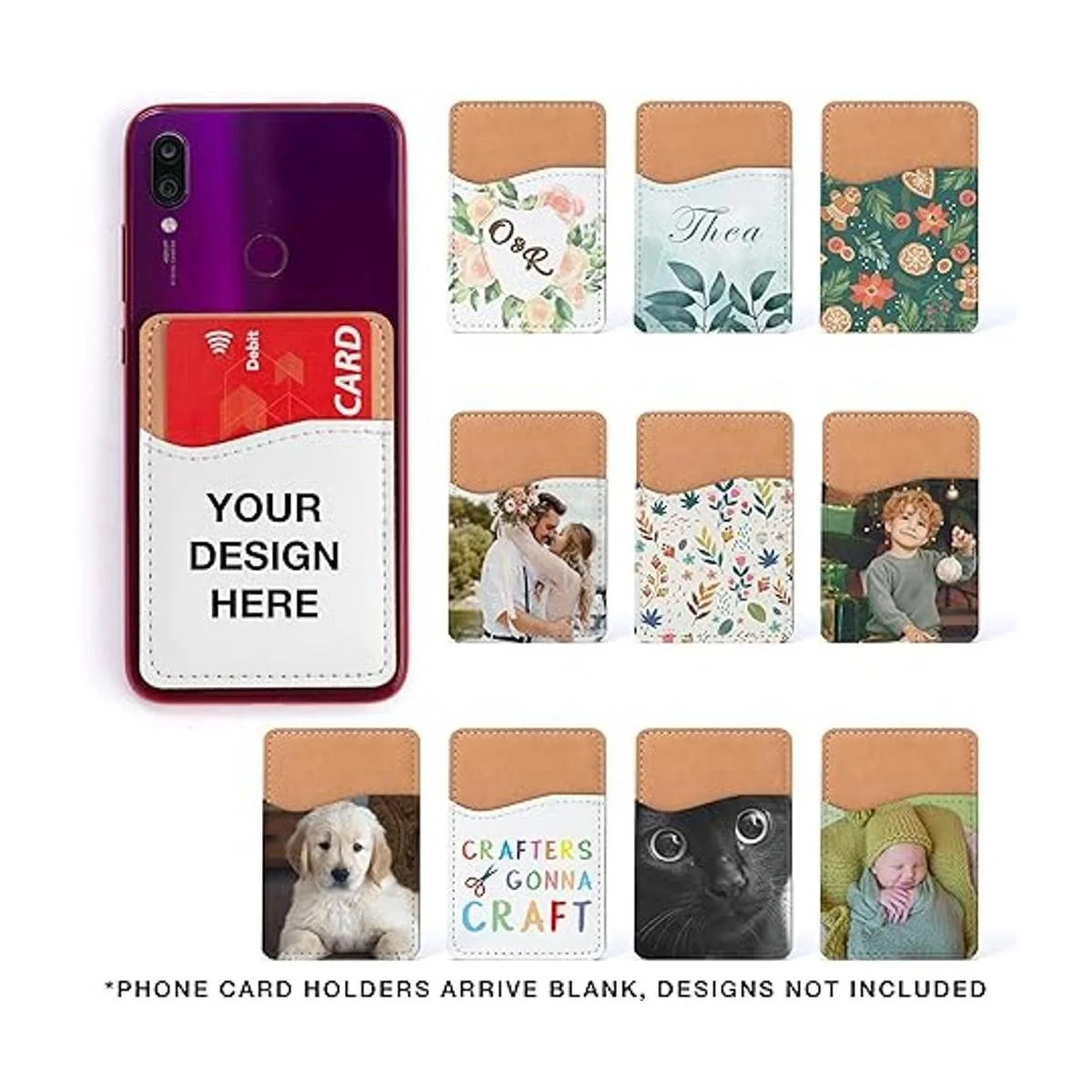 RYTOO Cartera de teléfono en blanco por sublimación, tarjetero de piel sintética para la parte posterior del teléfono, se adhiere a iPhone, Android, HTV amigable para proyectos de vinilo piel sintética blanca