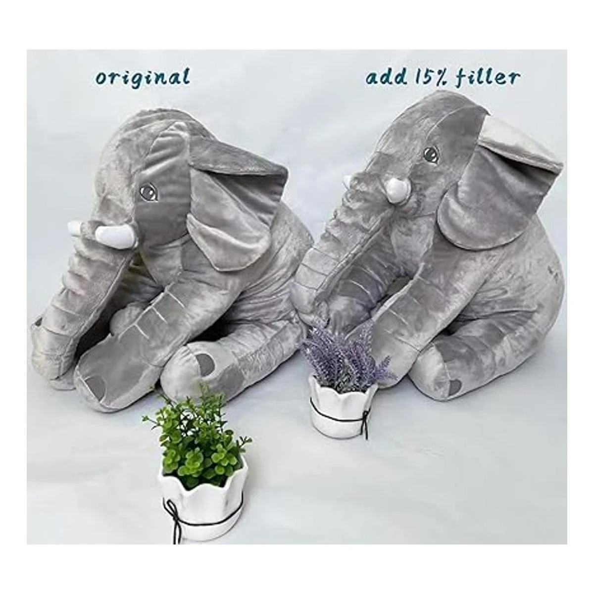 Tamaño grande: el peluche de elefante de peluche mide aproximadamente 24 x 24 x 8 pulgadas y pesa 1.2 libras. Embalaje al vacío, a prueba de humedad y daños.