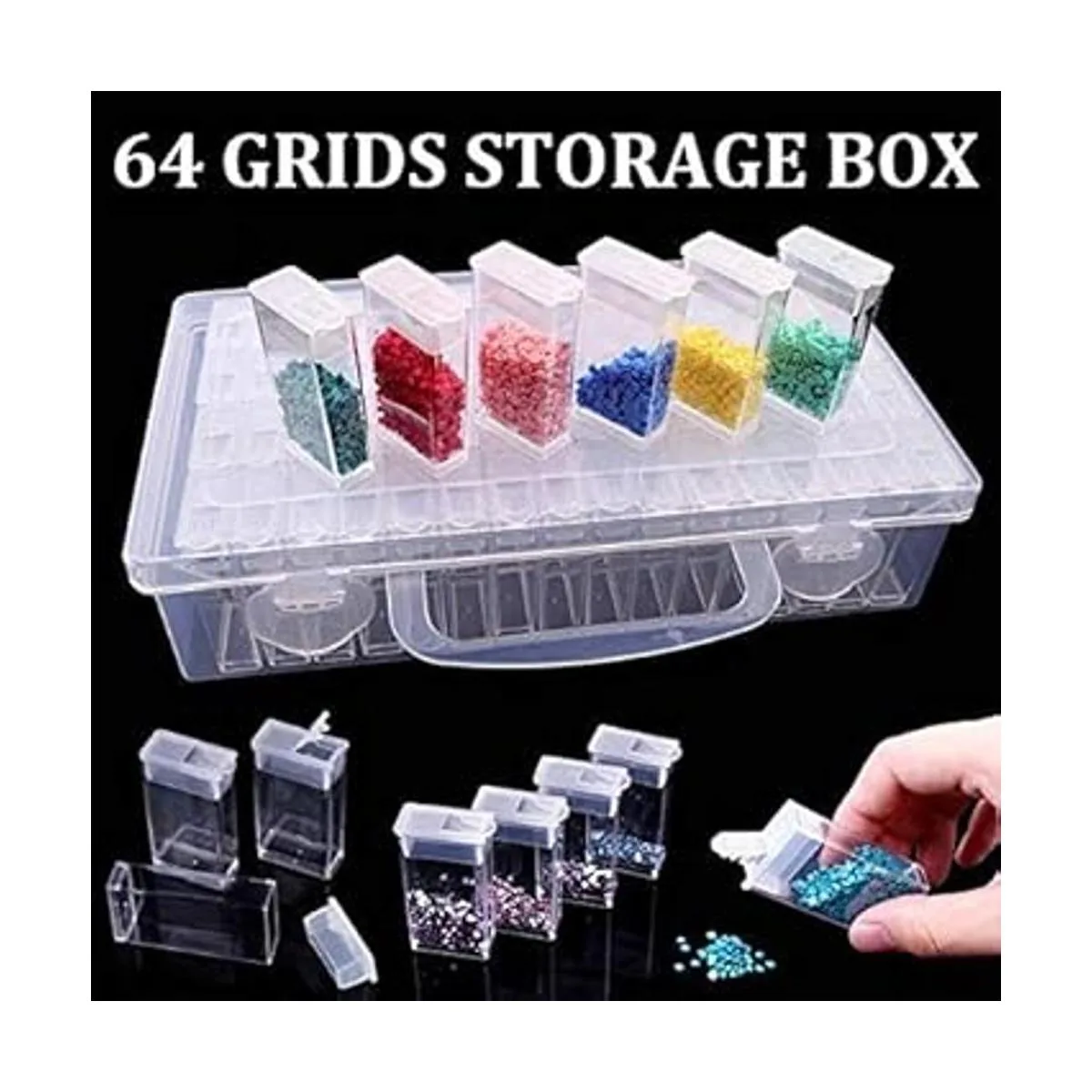 RZJZGZ Caja de bordado de diamantes de 64 cuadrículas, cajas de almacenamiento de brocas de plástico transparente para pintura de diamantes, cajas de accesorios para manualidades