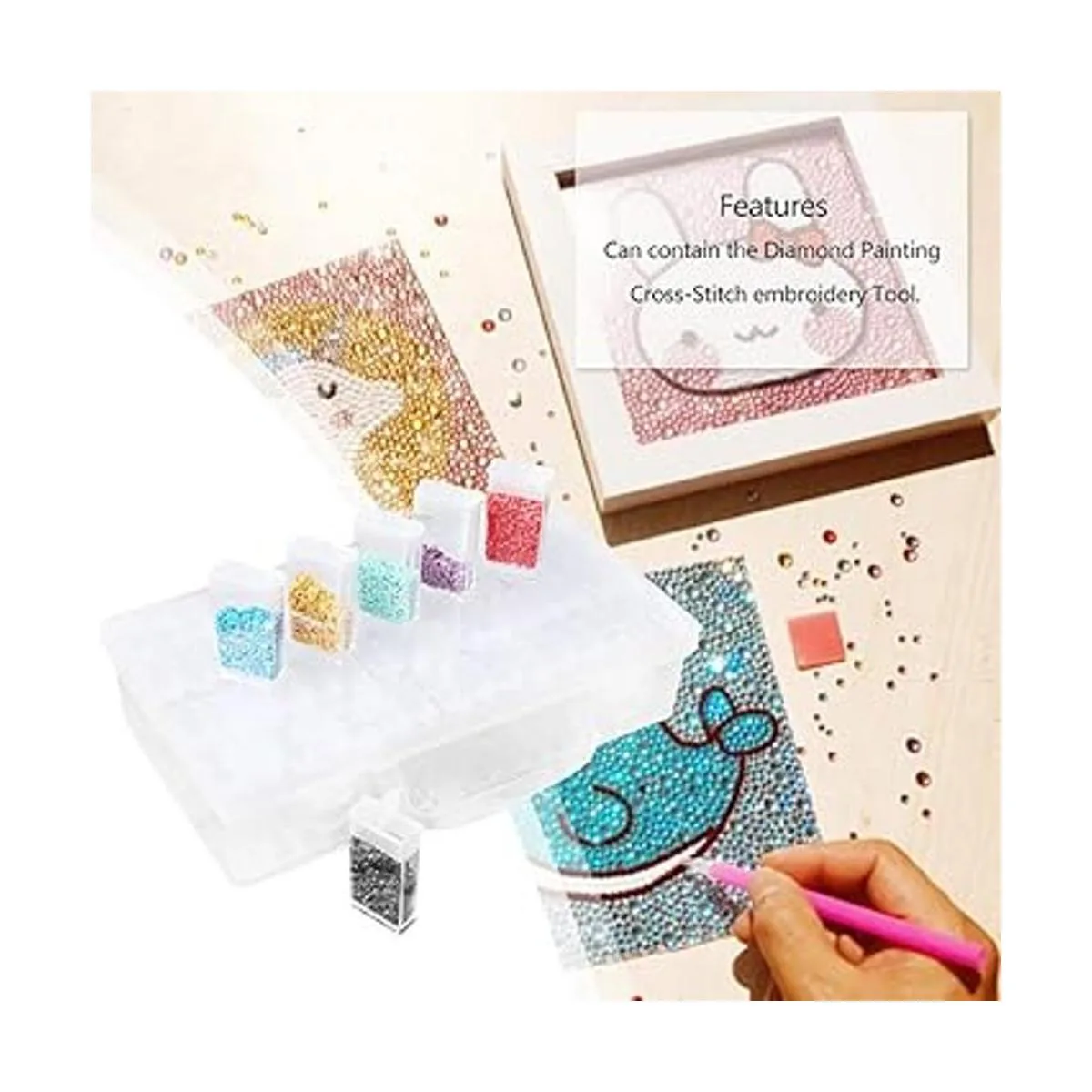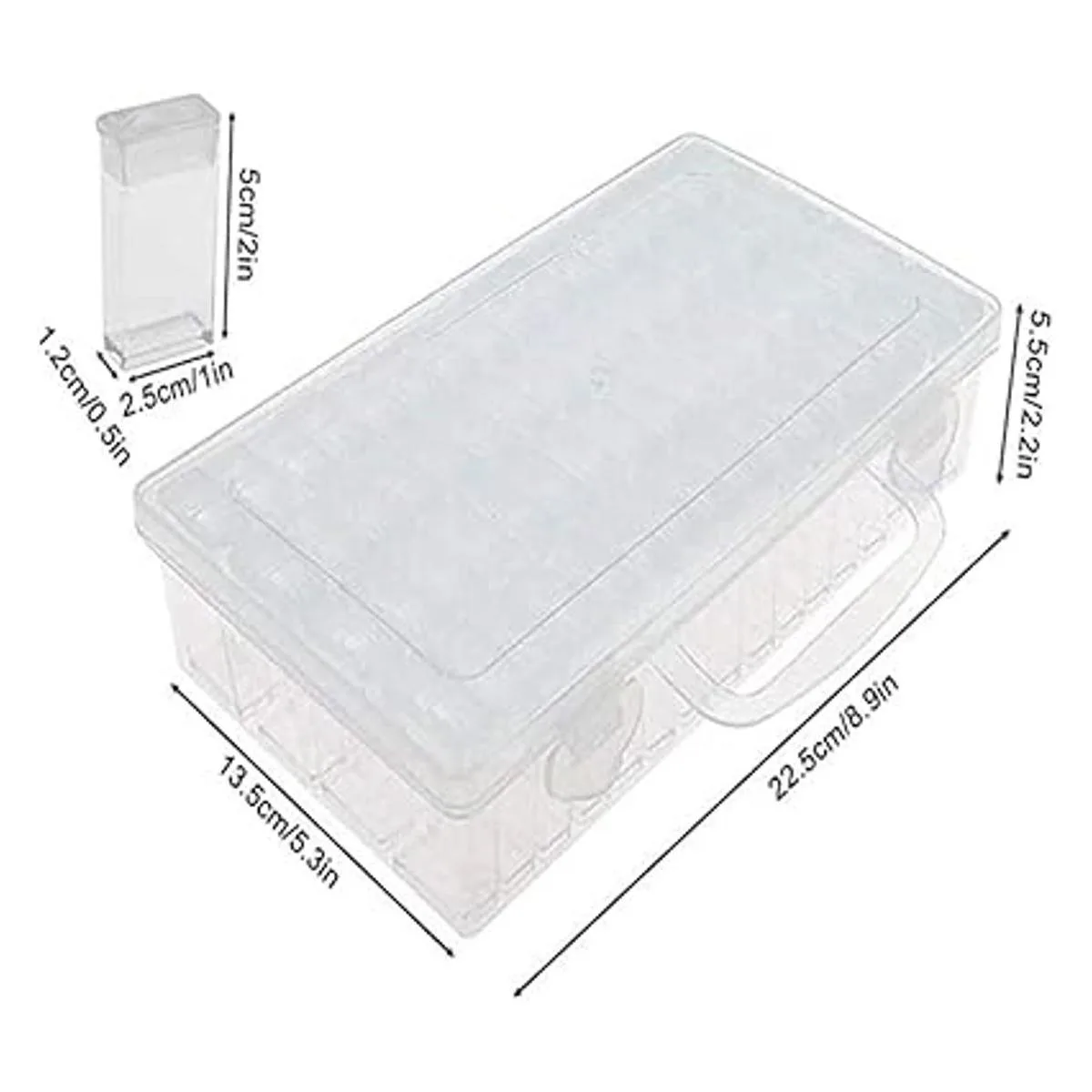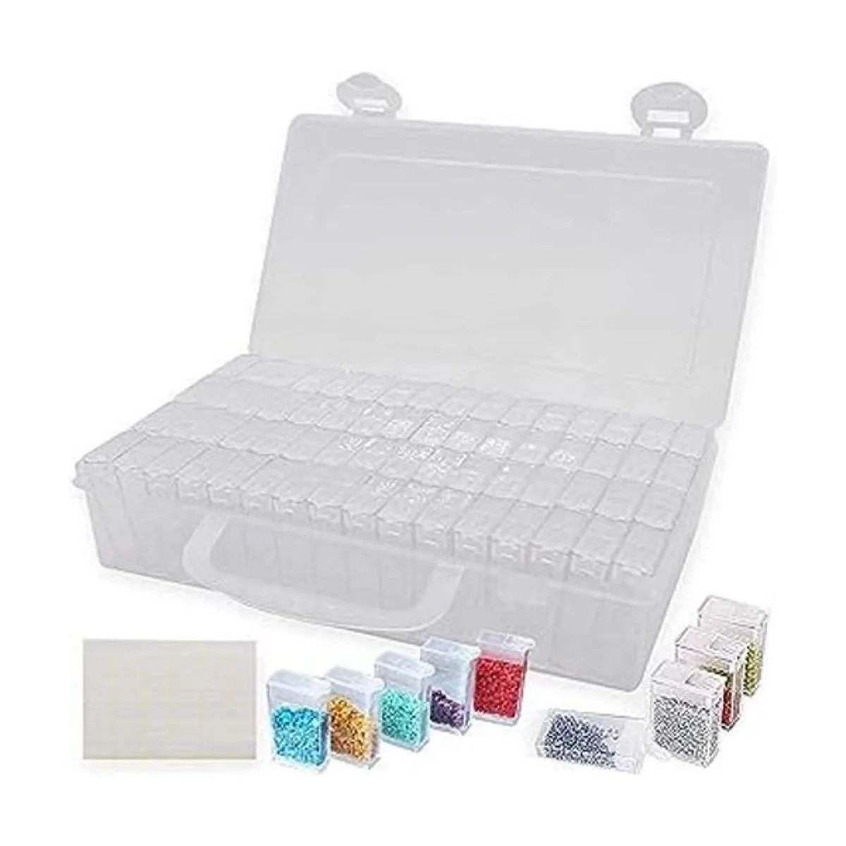 Caja de almacenamiento de diamantes hecha de material de polipropileno transparente compacto, duradero y reutilizable. Cada pequeña ranura de diamante con hebilla a presión para mantener los objetos pequeños seguros.
