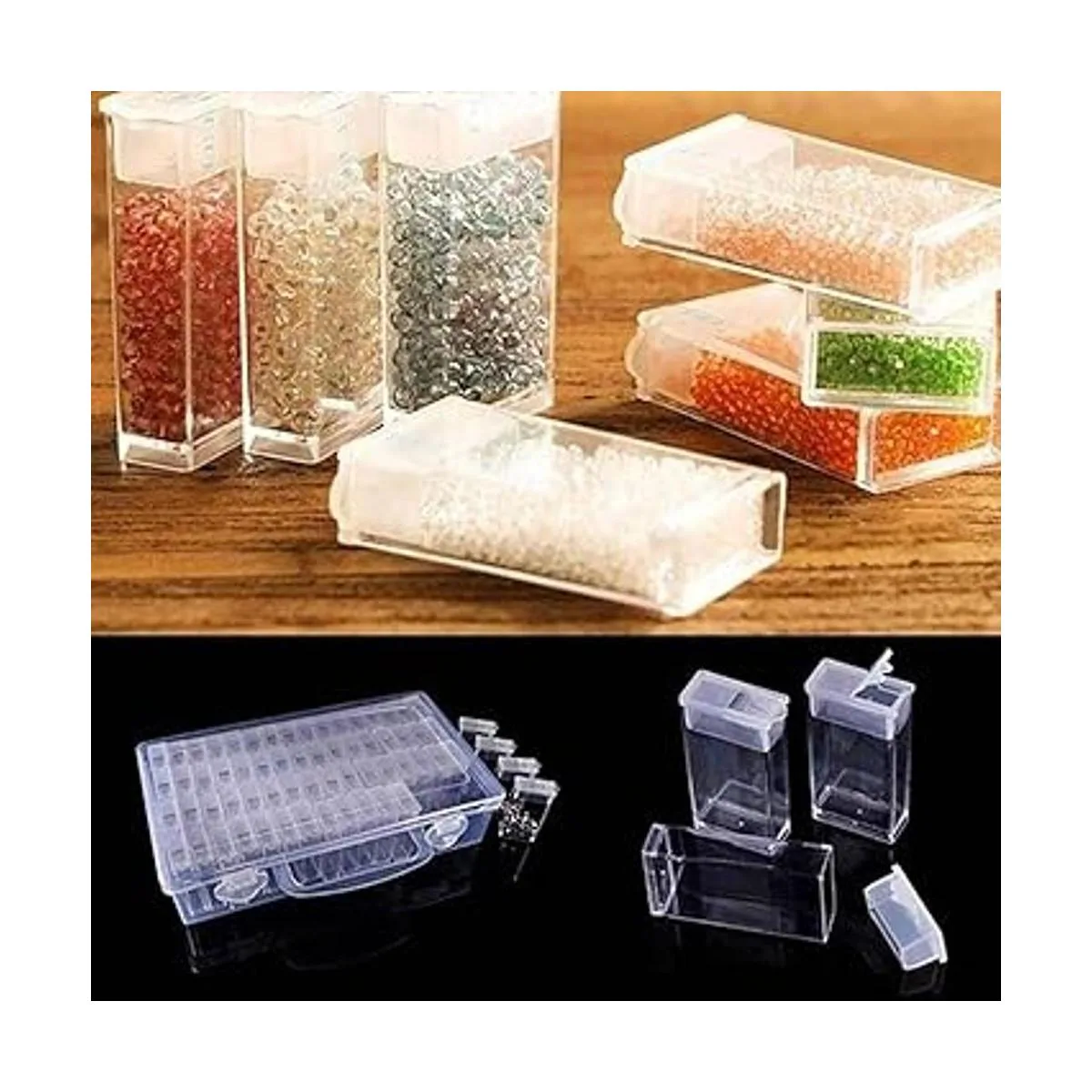 Multifuncional: es para almacenar todos los artículos más pequeños, pequeñas cuentas de joyería, se puede utilizar como caja de almacenamiento de accesorios de pintura de bordado de diamantes, aretes de almacenamiento, collares, cuentas, diamantes de imitación, gemas, accesorios de arte de uñas, anillos de dedos, joyas pequeñas o anzuelo de pesca.