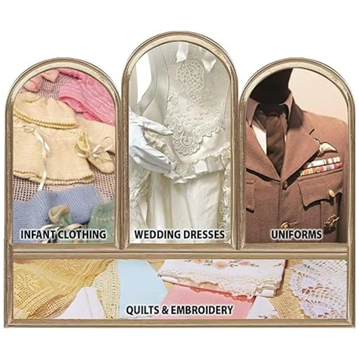 Para edredones y costura, vestidos de boda y vintage, uniformes militares, ropa infantil