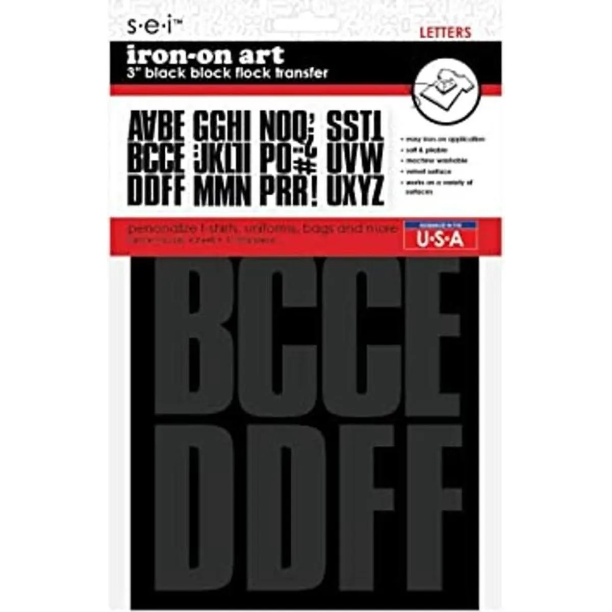 S.E.I Letras de transferencia termoadhesivas de bloque negro de 3 pulgadas