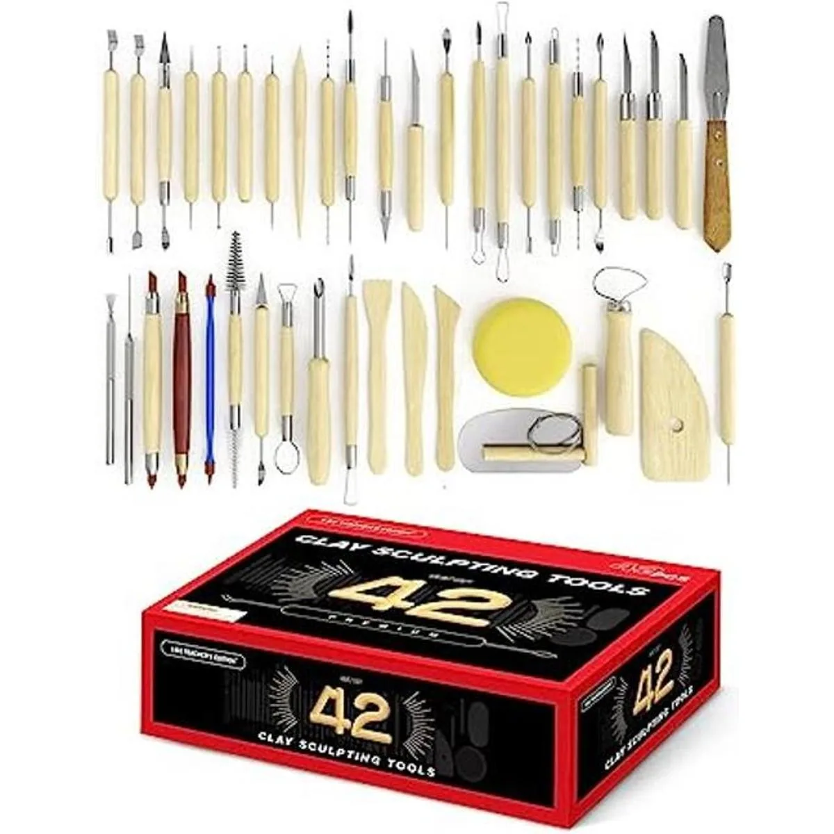 S E TEACHERS EDITION 42 piezas de herramientas de escultura de cerámica y arcilla, asas de madera lisas de doble cara.