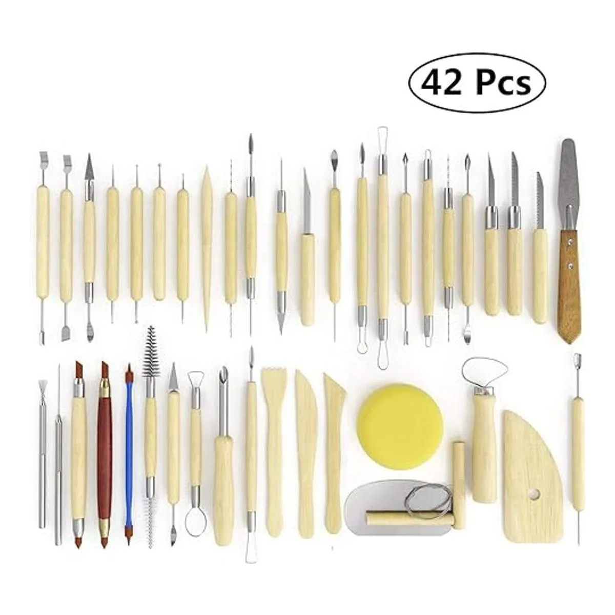 Incluye herramientas de modelado de madera, raspadores, cortador de arcilla de alambre, herramienta de cinta, herramienta de aguja, bucle, esponja y mucho más.