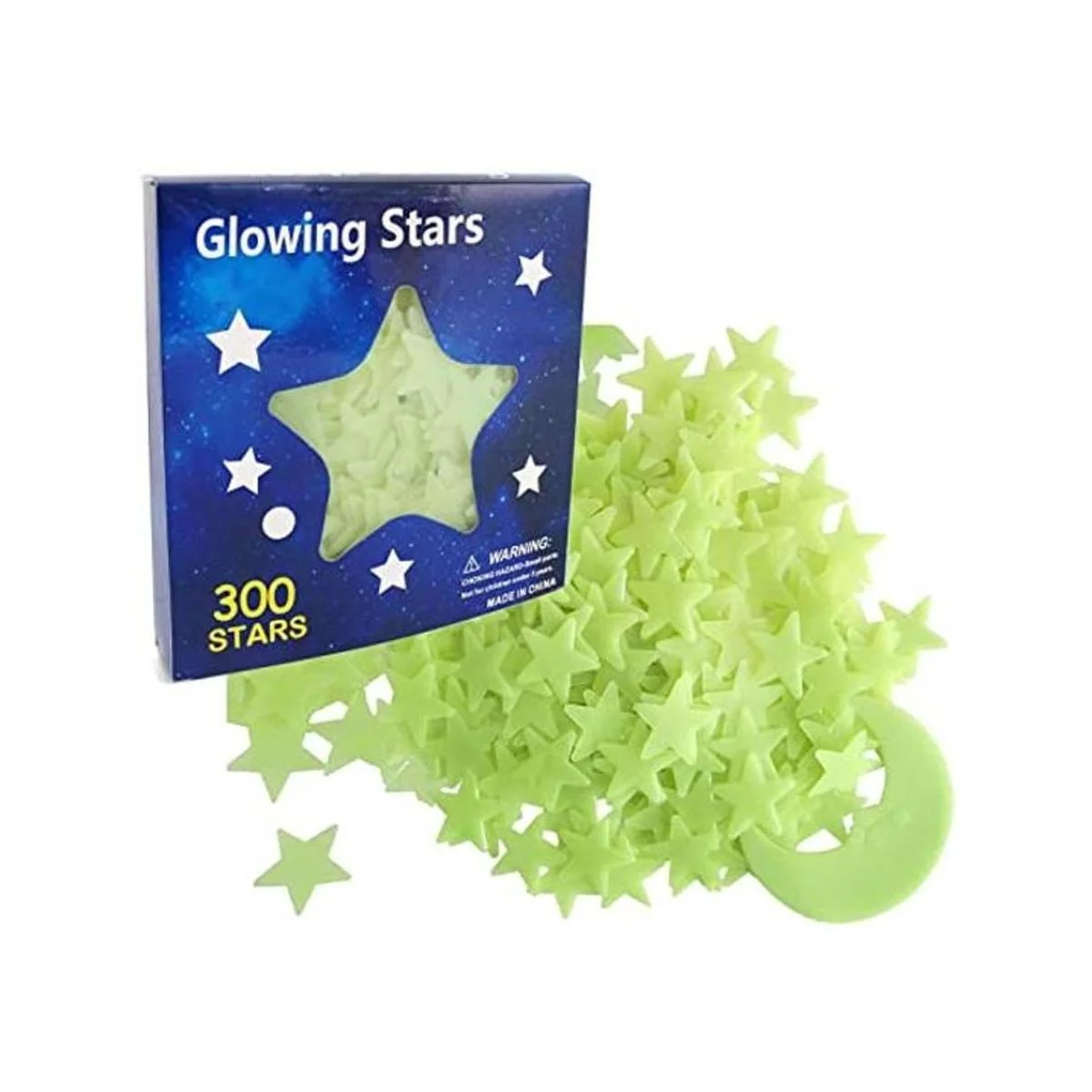 300 estrellas que brillan en la oscuridad y 2 lunas, vienen con almohadillas adhesivas para construir un hermoso cielo o tus propias ideas increíbles en tus paredes o techo.