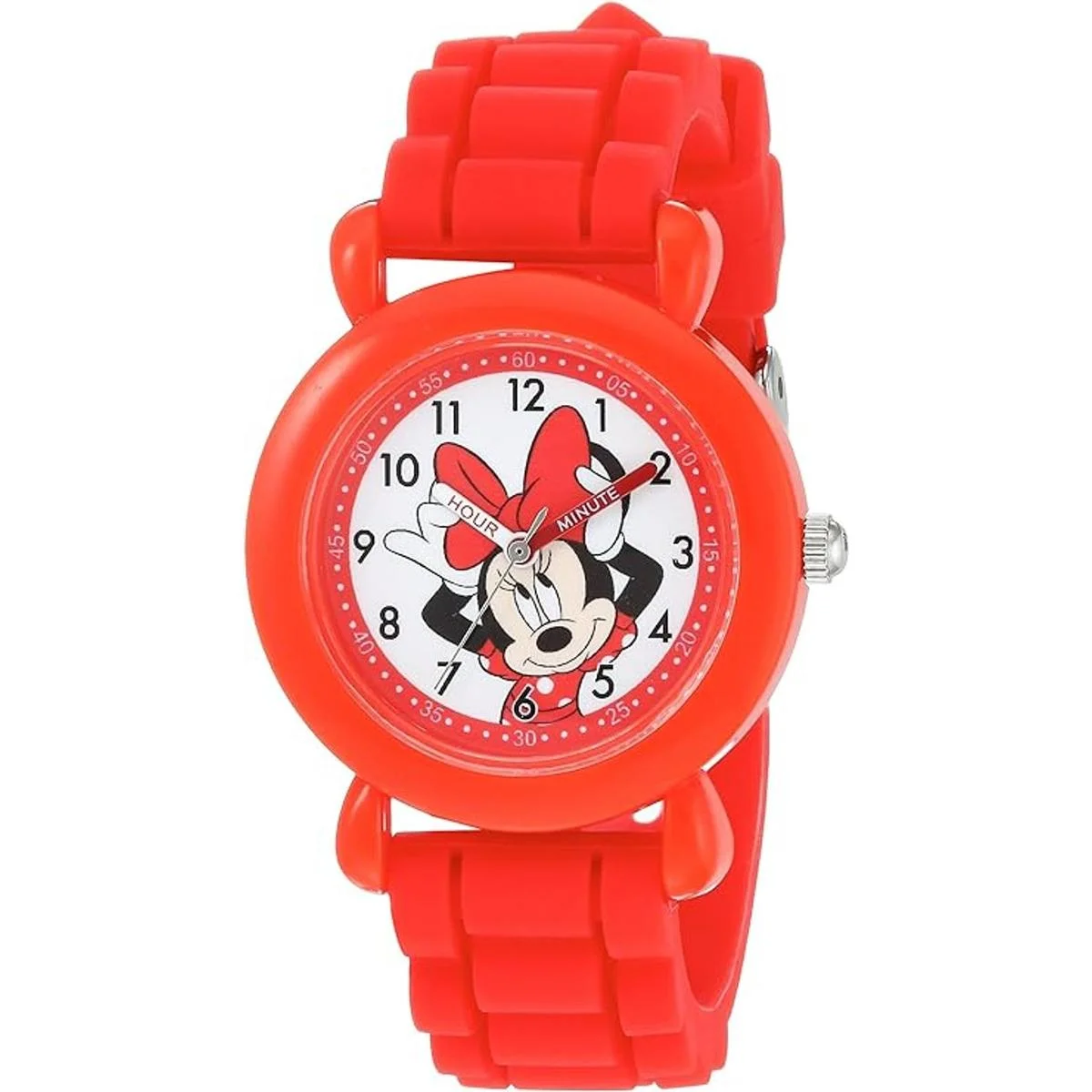 Disney Minnie Mouse Girls Red Plastic Time Teacher Watch, Red Silicone Strap, WDS000138