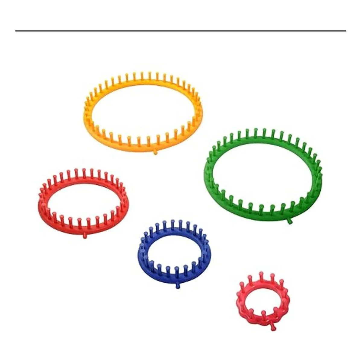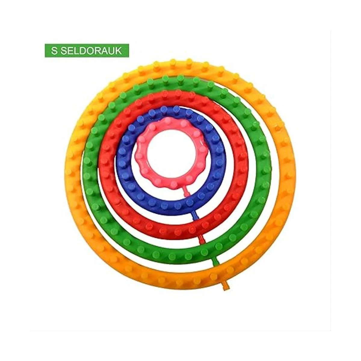 S SELDORAUK Juego de telares de punto redondos, telares de plástico de 5 tamaños, tejido con 2 agujas de tejer y 2 ganchos de ganchillo para gorro, suéter, calcetín