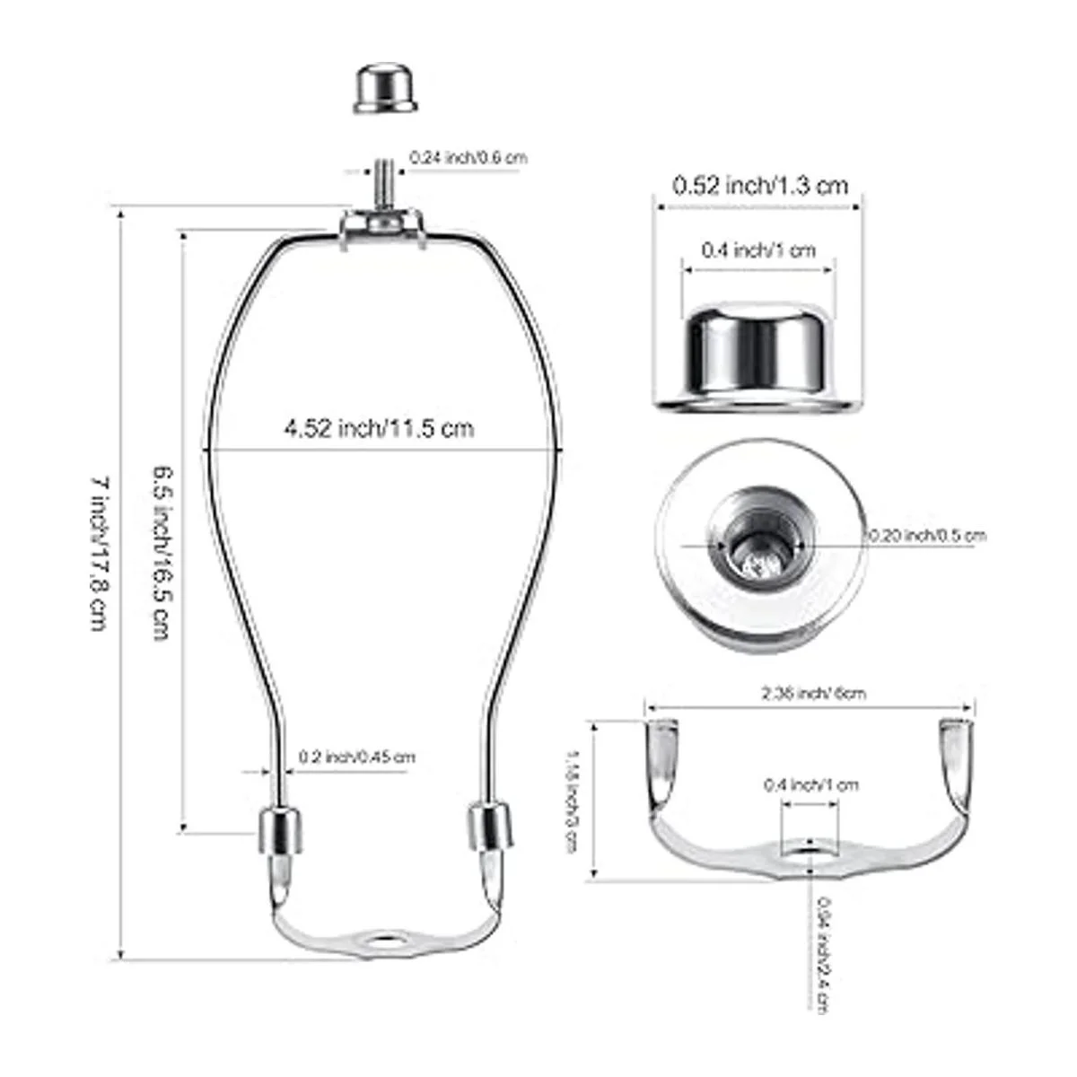Saangseon Soporte para arpa de níquel de 7 pulgadas, con remate y base de asiento desmontable, juego de 2 accesorios de iluminación para bricolaje, marco de bocina, soporte de pantalla de lámpara