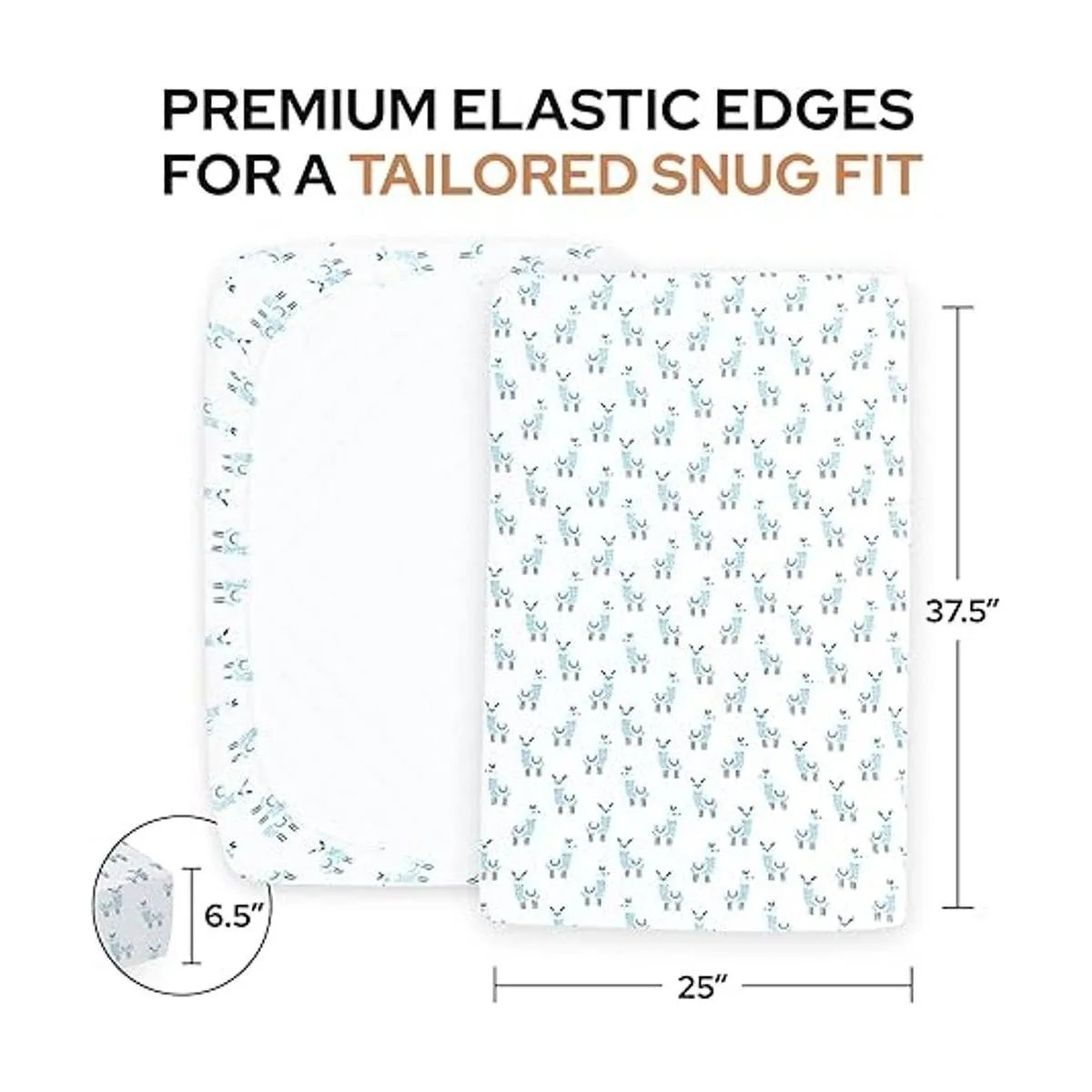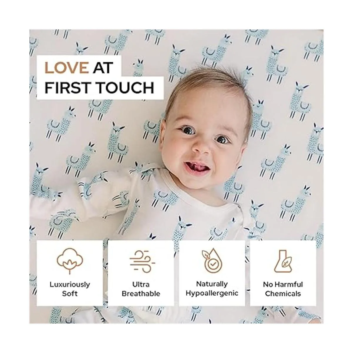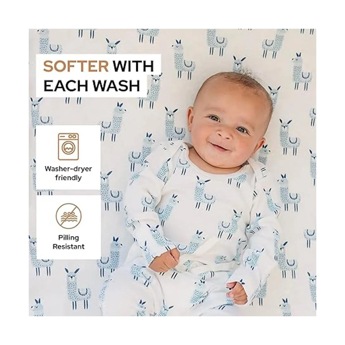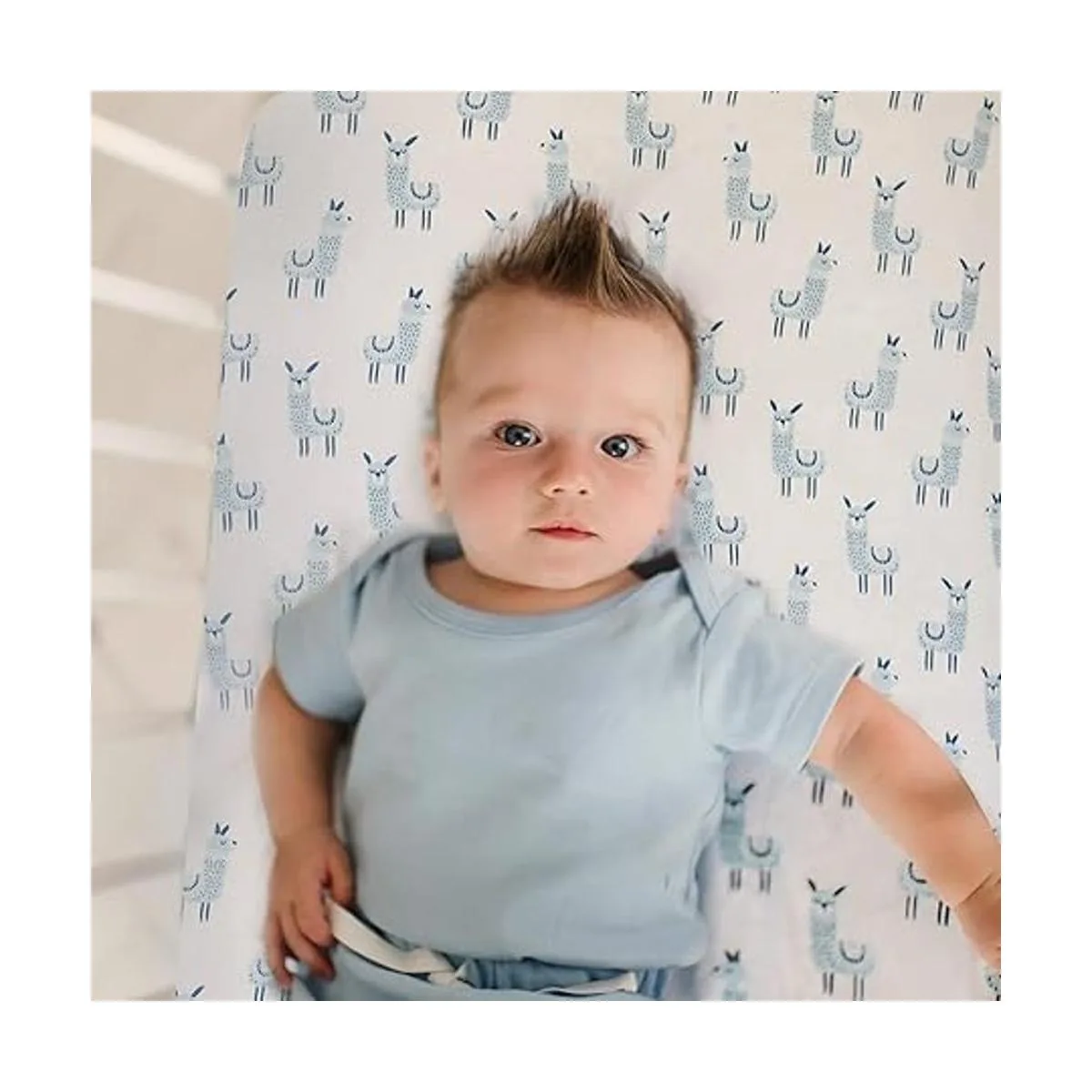 Sábana bajera para cuna con patrón de llamas 100 algodón orgánico Pack n Play Mini paquete y sábanas de juego de primera calidad, sábana de pepinillo y calabaza compatible con Graco Pack n Play y mini sábanas para cuna